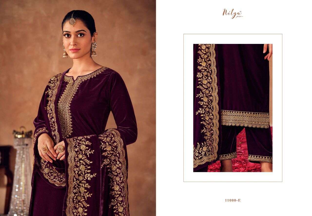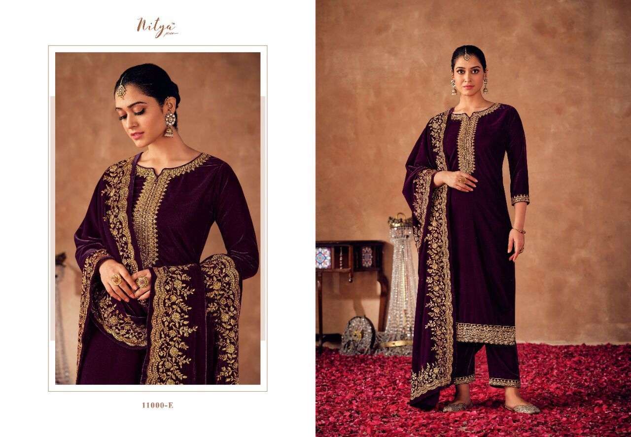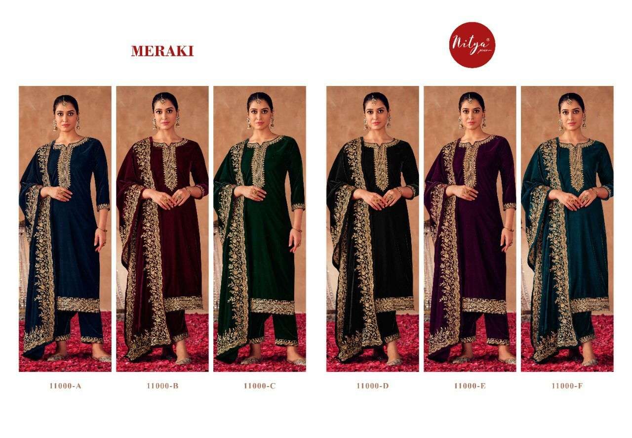 MERAKI BY LT NITYA DESIGNER WITH WORK STRAIGHT VELVET SUITS ARE AVAILABLE IN SINGLES AT WHOLESALE PRICE