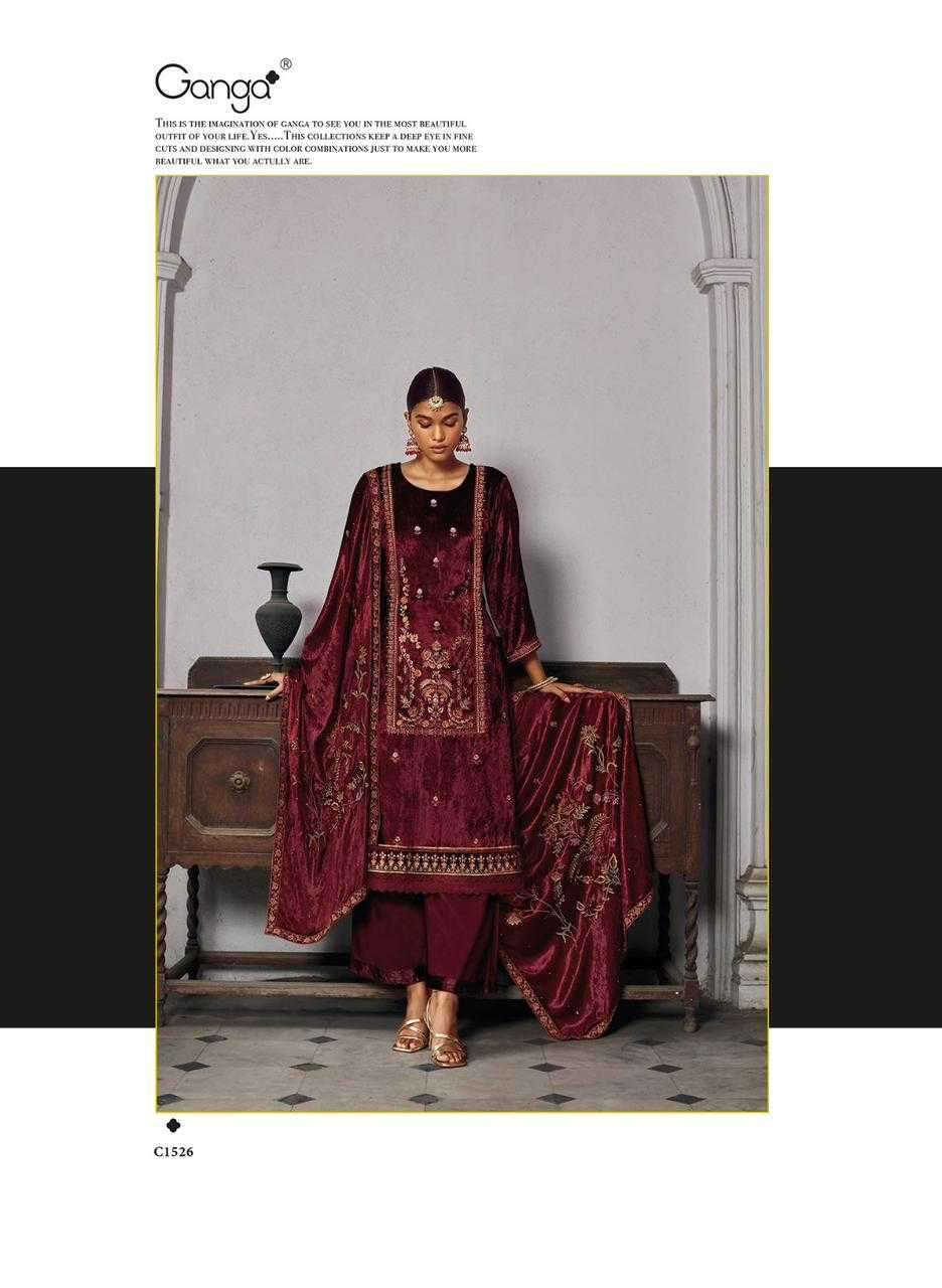 TOP - PREMIUM PURE ITALIAN VELVET SOLID WITH EMBROIDERY & DAMAN & SLEEVE EMBROIDERY & HANDWORK WITH FANCY LACE