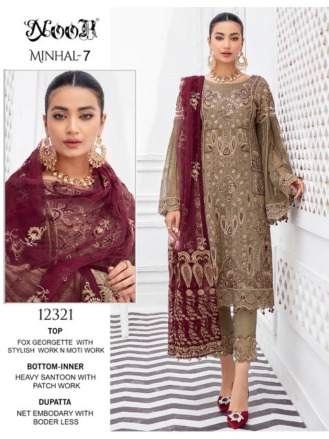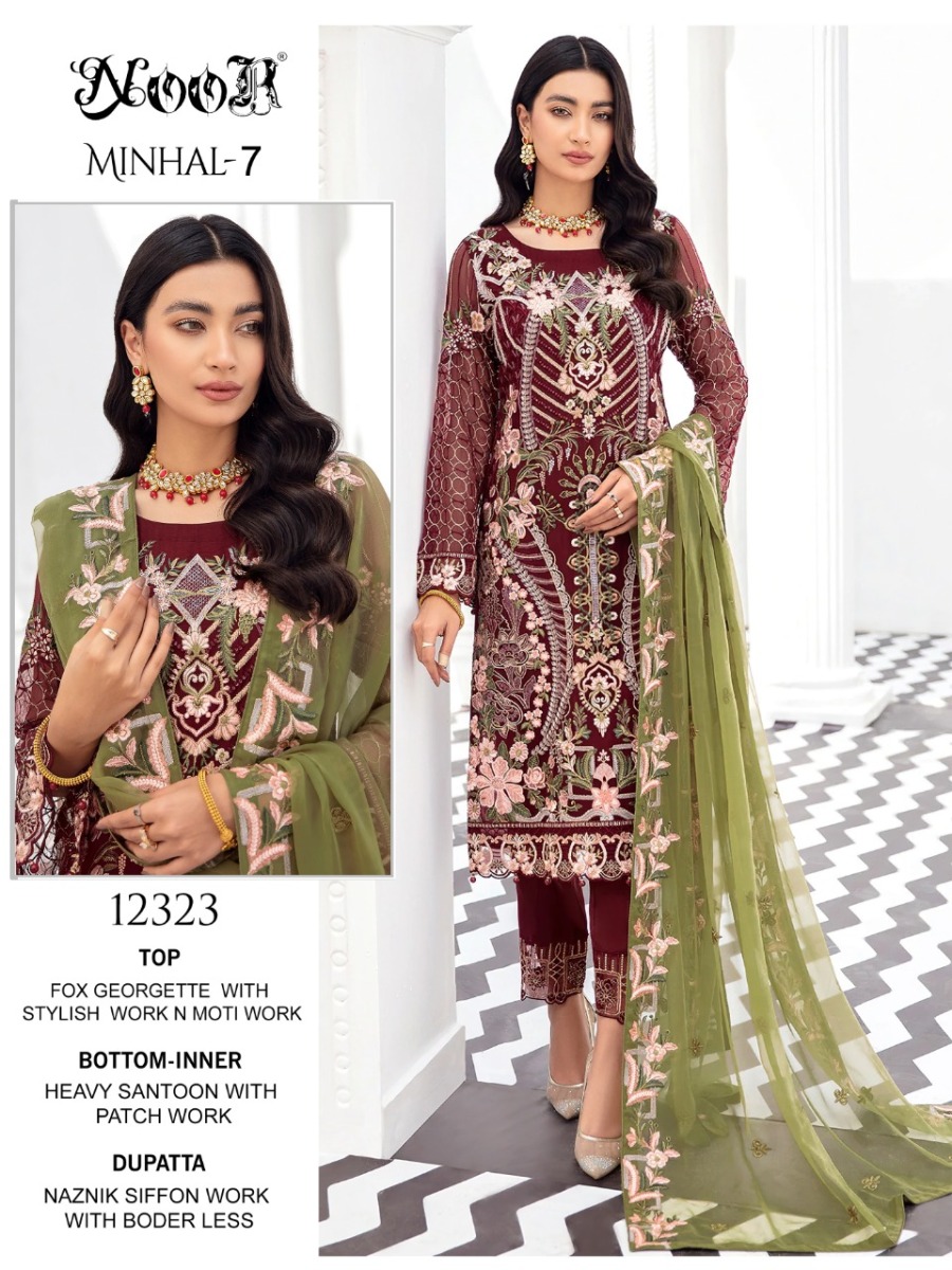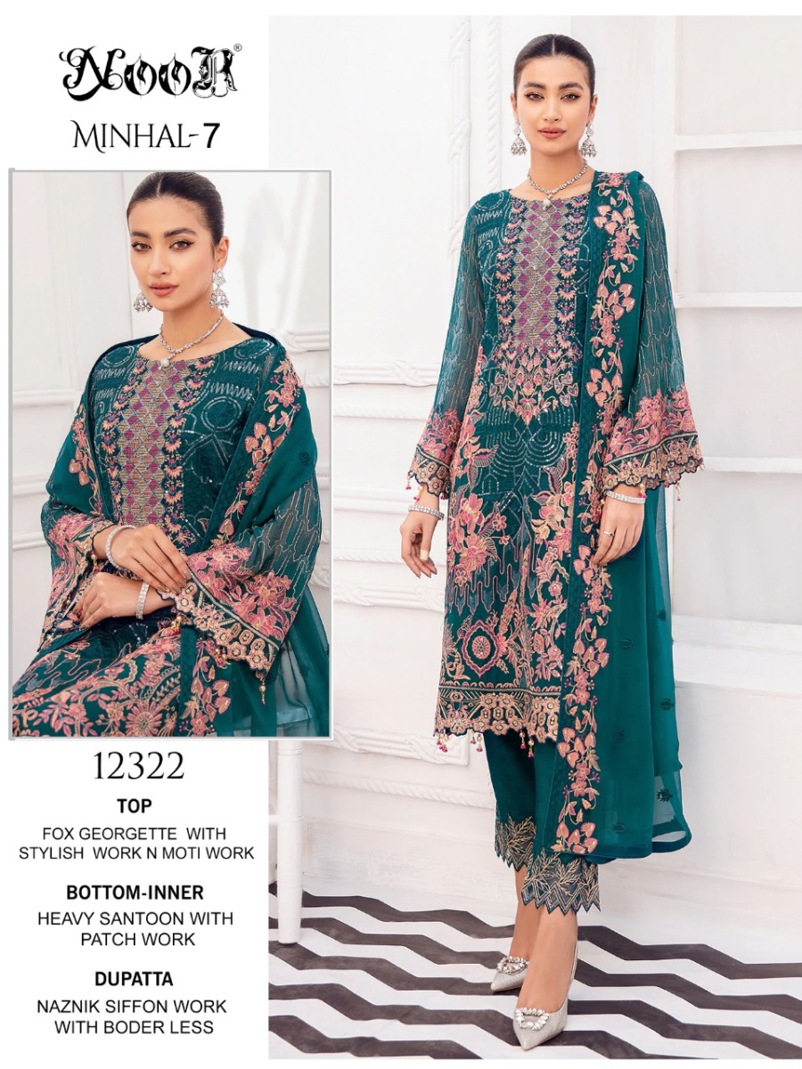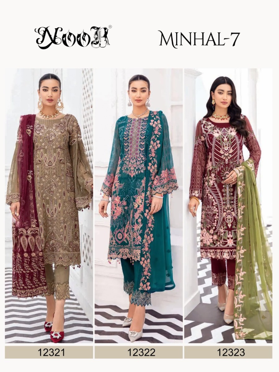 Minhal Vol-7 By Noor Designer With Embroidery Work Georgette Pakistani Style Suits Are Available At Wholesale Price