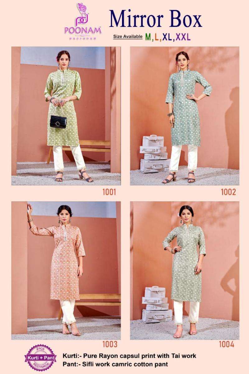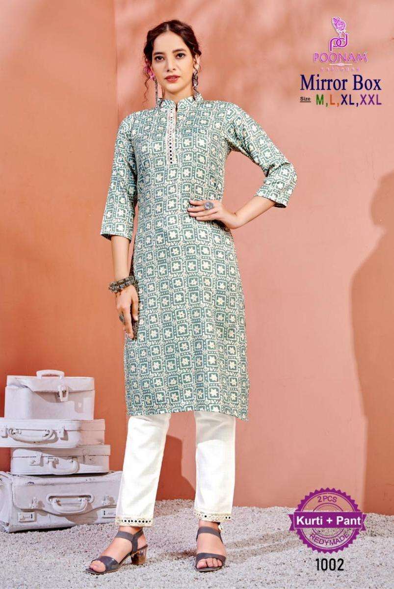 MIRROR BOX KURTI BY POONAM DESIGNER PRINTED RAYON KURTI WITH PANT ARE AVAILABLE AT WHOLESALE PRICE04
