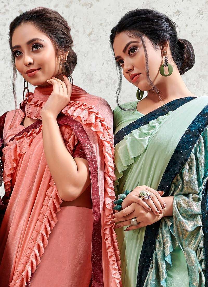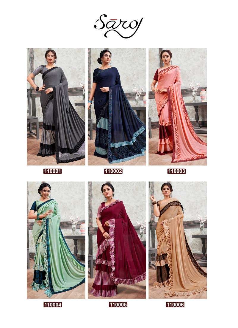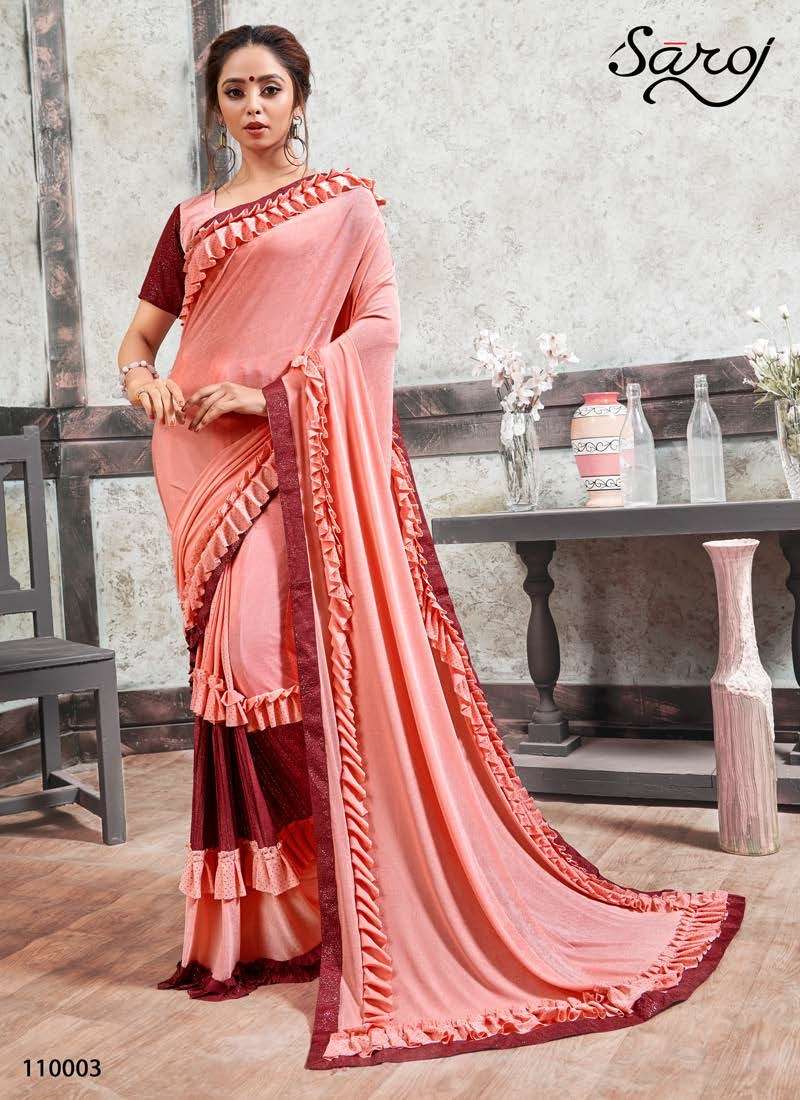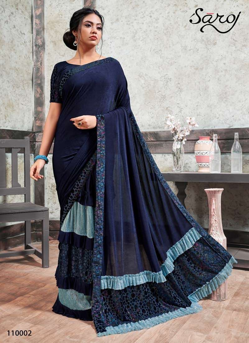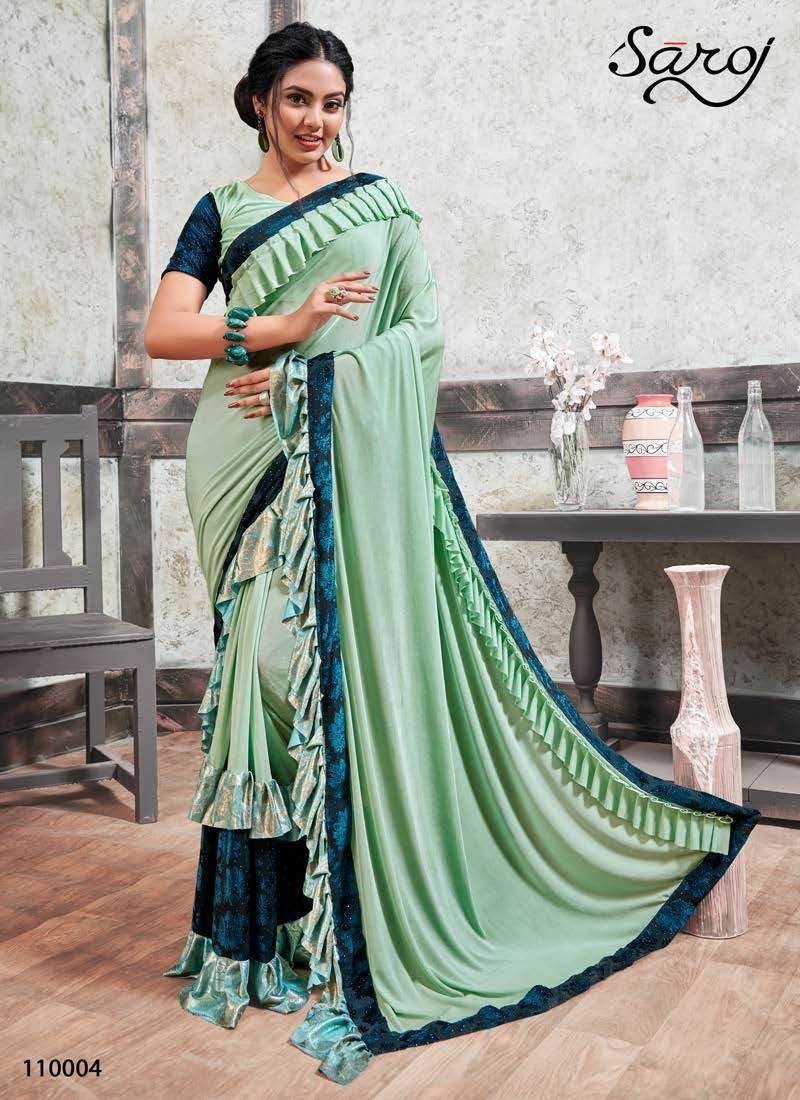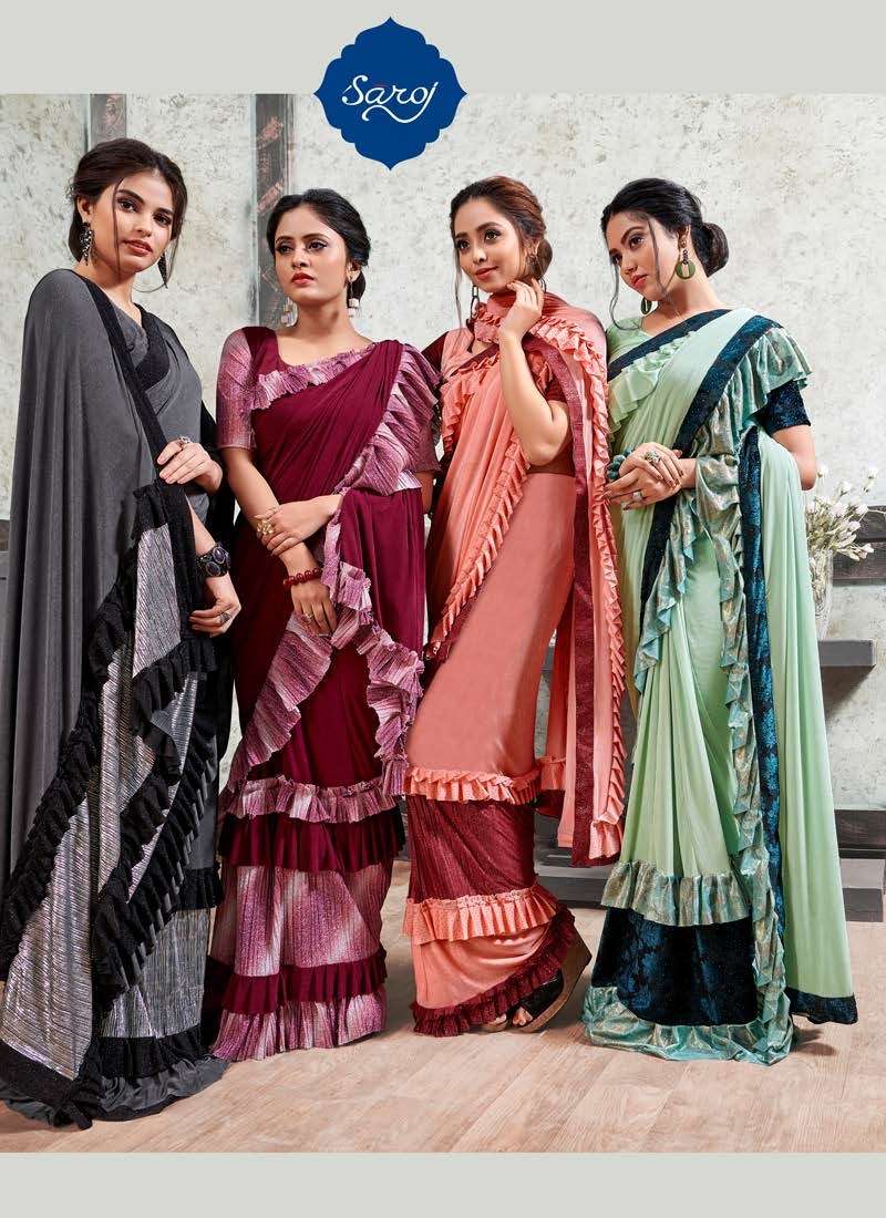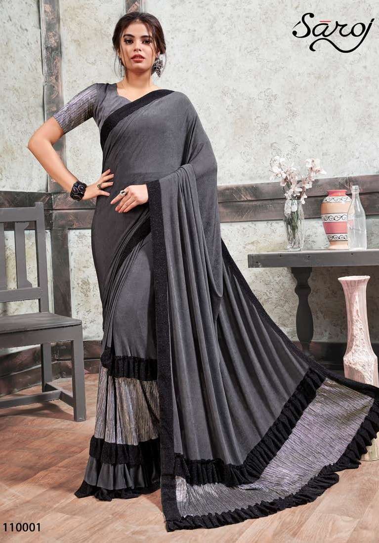 MIRROR LOOK SAREE BY SAROJ DESIGNER PARTY WEAR LYCRA SAREES ARE AVAILABLE AT WHOLESALE PRICE