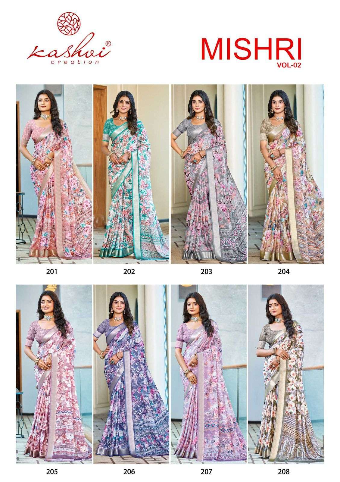 | Name: | kashvi-MISHRI VOL-2 SERIES 201 TO 208 SAREE BY KASHVI |