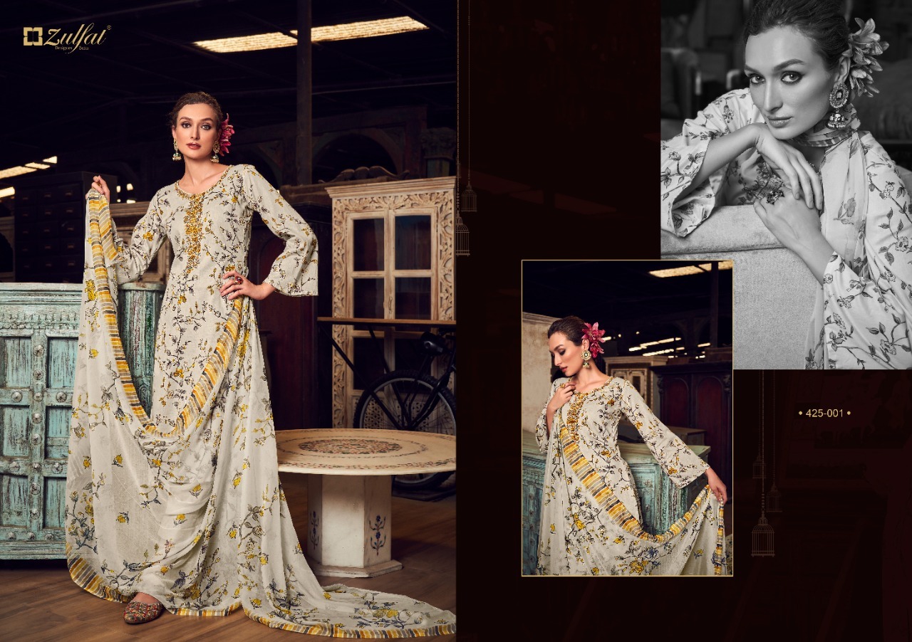 Mitakshi By Zulfat Designer With Printed And Embroidery Work Zam Cotton Suits Are Available At Wholesale Price