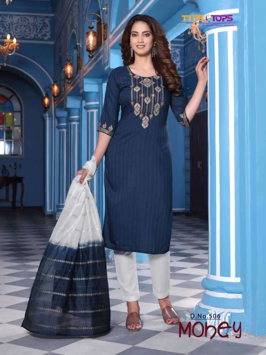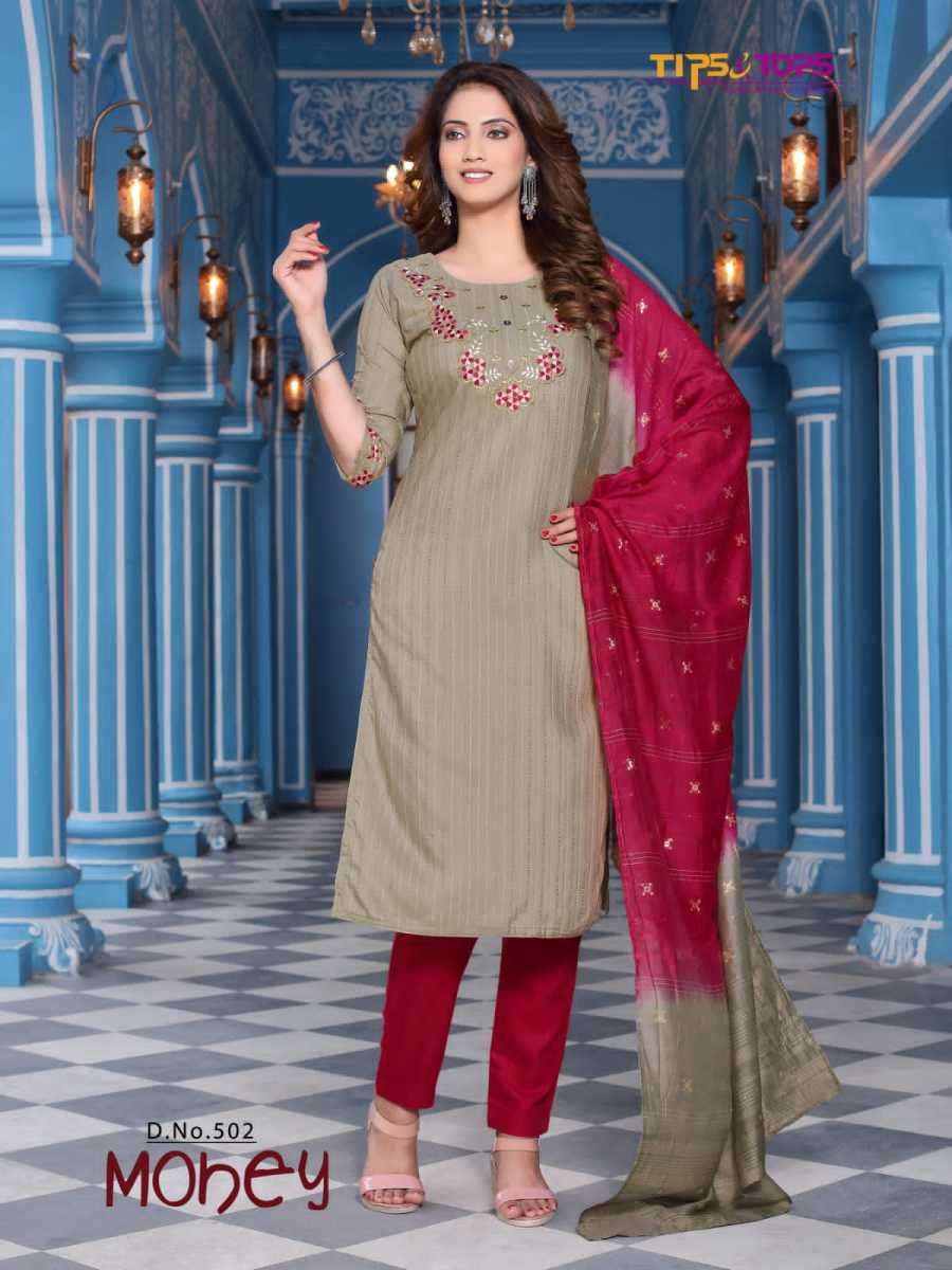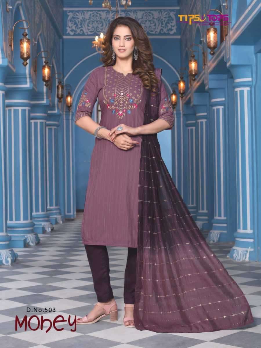 MOHEY VOL-5 BY TIPS & TOPS DESIGNER WITH WORK VISCOSE CHINON KURTI WITH BOTTOM AND DUPATTA ARE AVAILABLE AT WHOLESALE PRICE