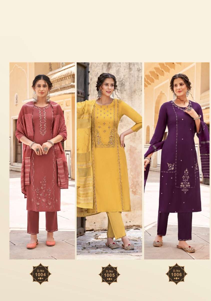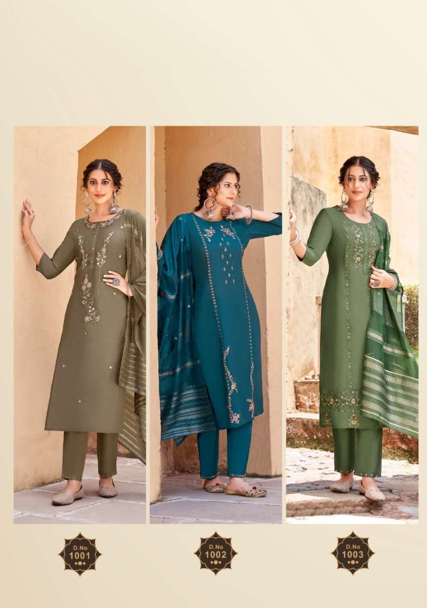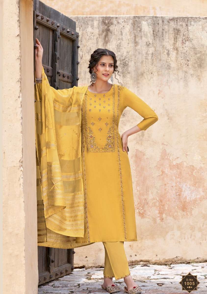 MOHINI BY AMAAYA DESIGNER WITH WORK VISCOSE KURTI WITH PANT AND DUPATTA ARE AVAILABLE AT WHOLESALE PRICE