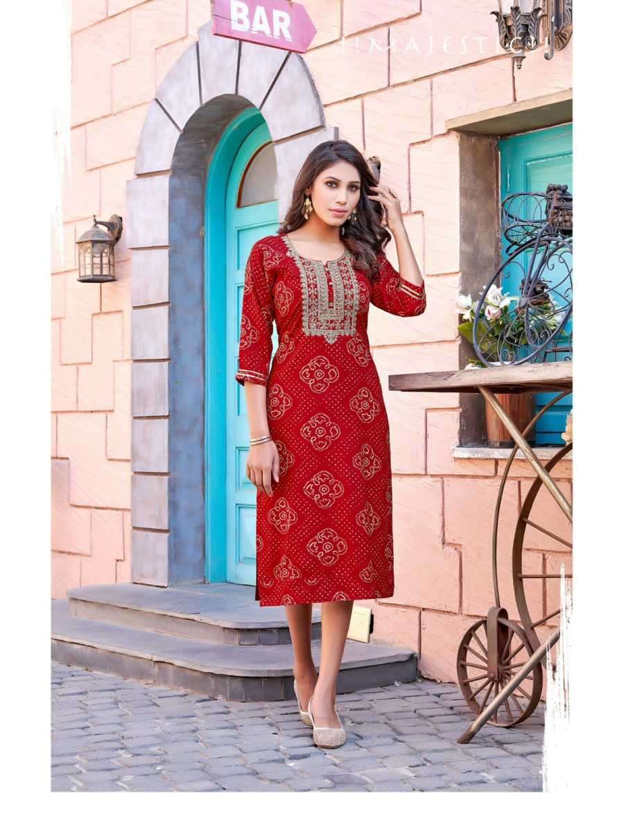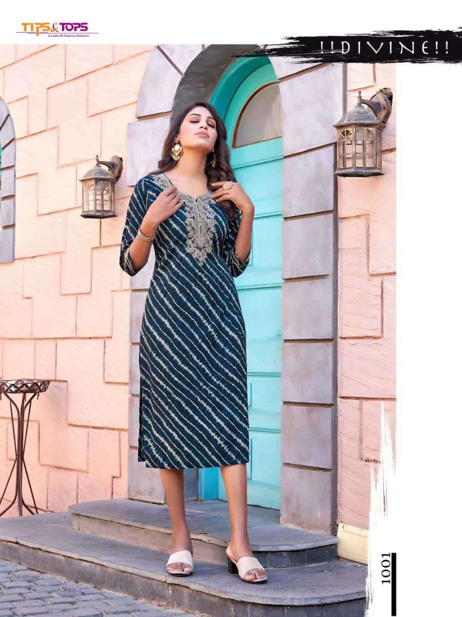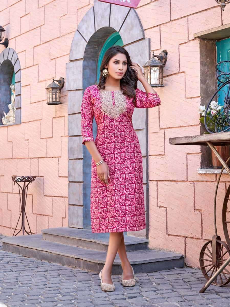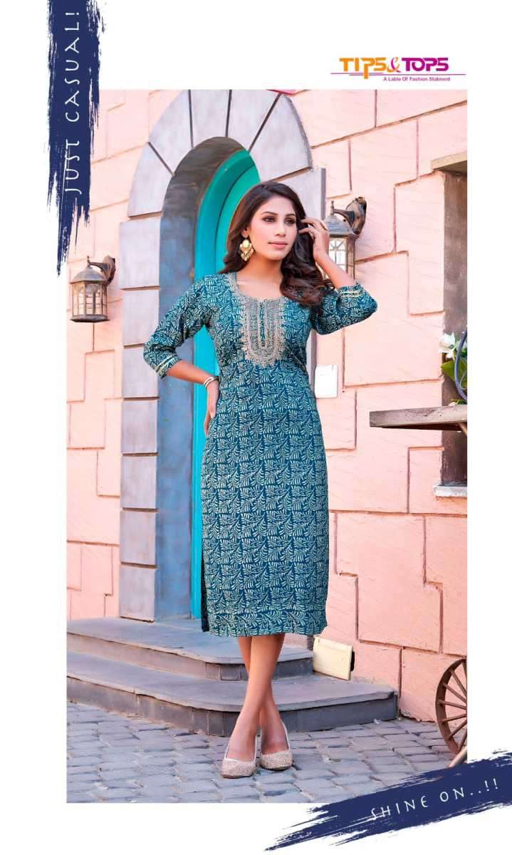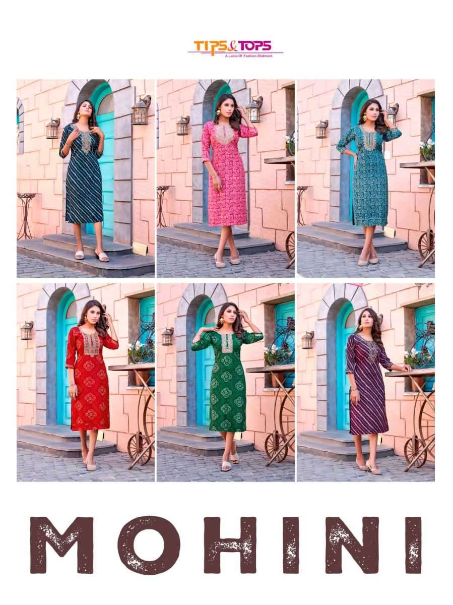 MOHINI KURTI BY TIPS & TOPS DESIGNER WITH EMBROIDERY WORK RAYON KURTIS ARE AVAILABLE AT WHOLESALE PRICE