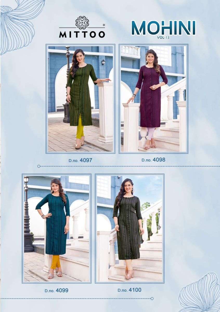 | Name: | mitto-MOHINI VOL-13 SERIES 4097 TO 4100 KURTI BY MITTO |