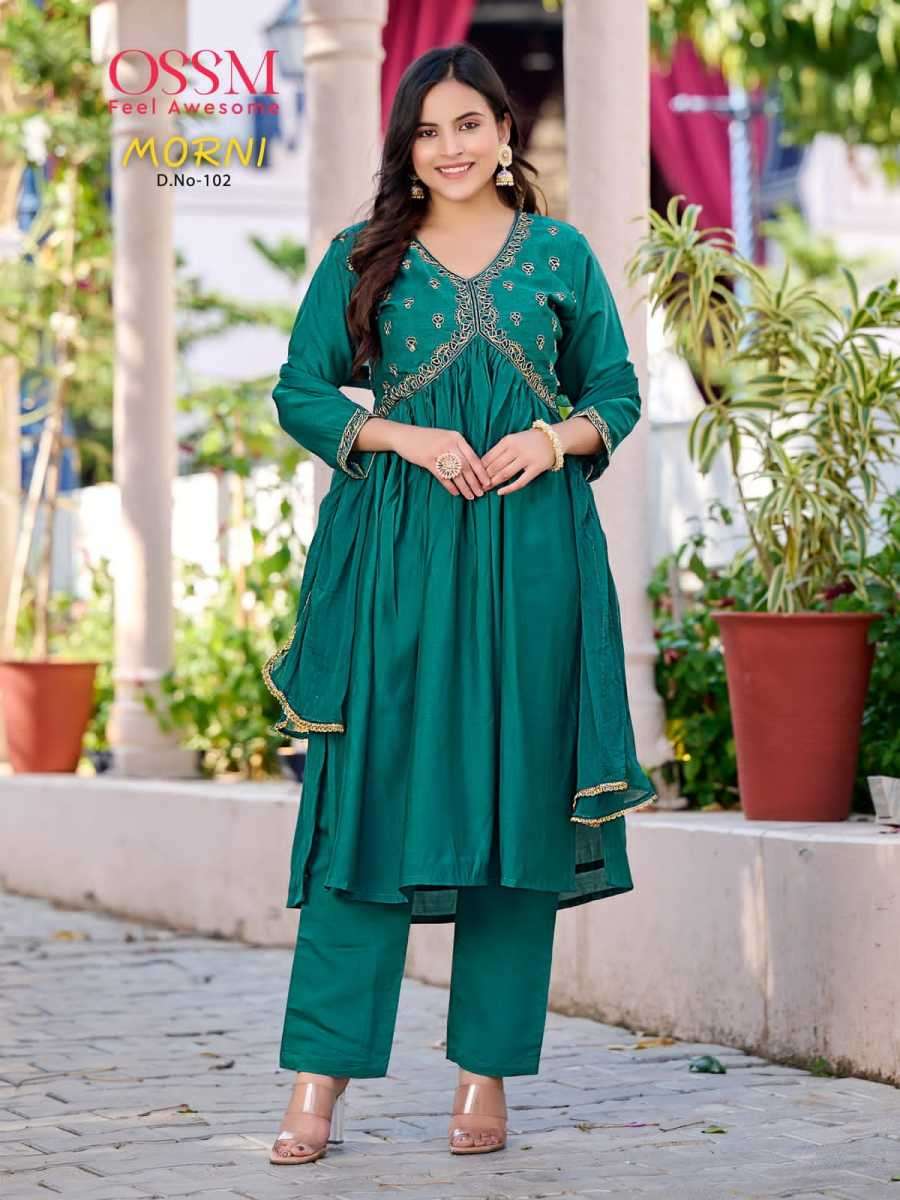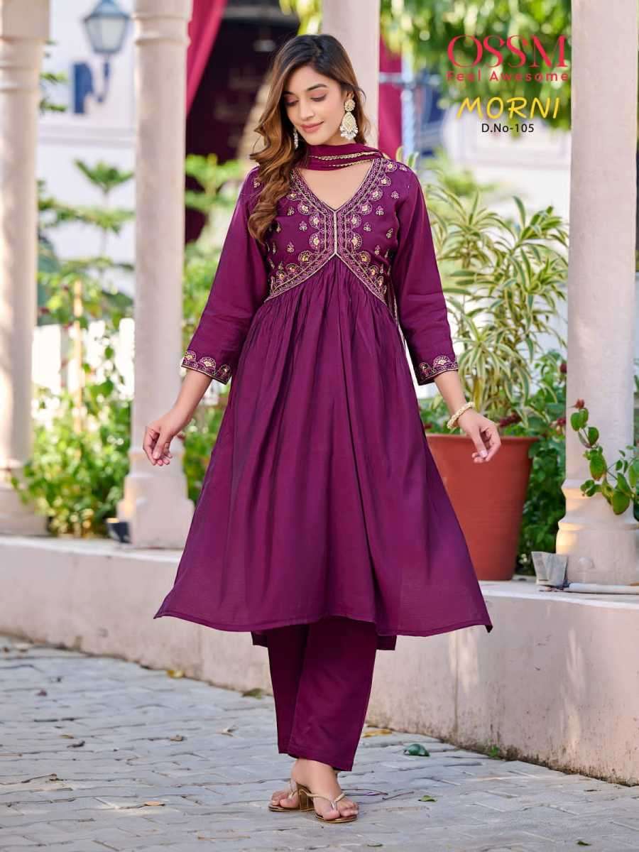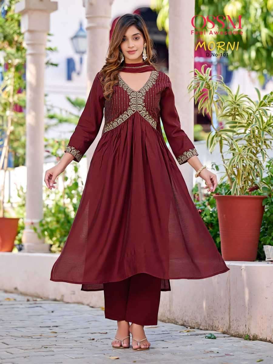MORNI KURTI BY OSSM DESIGNER WITH WORK VISCOSE SILK KURTI WITH PANT AND DUPATTA ARE AVAILABLE AT WHOLESALE PRICE