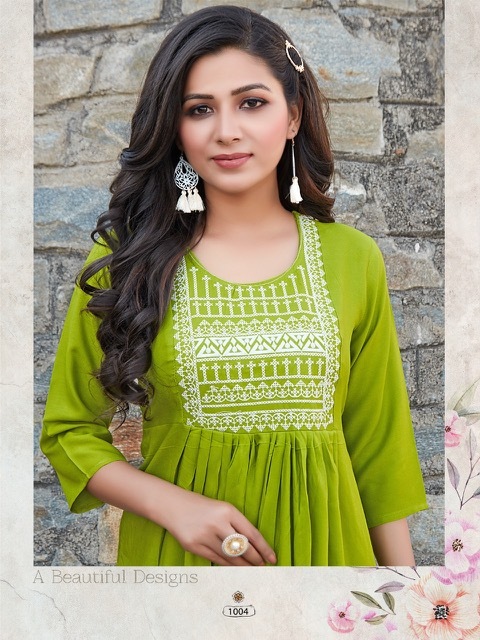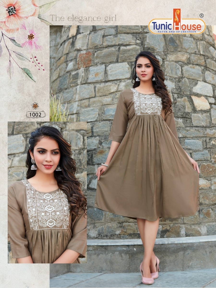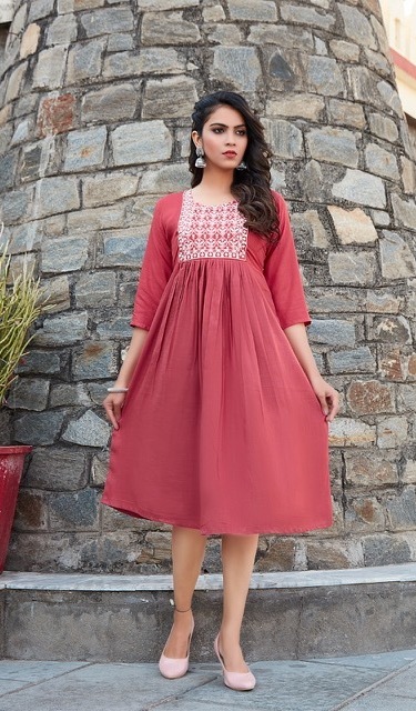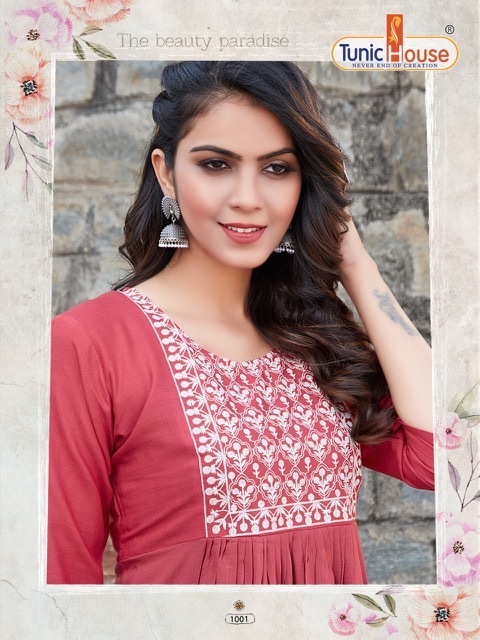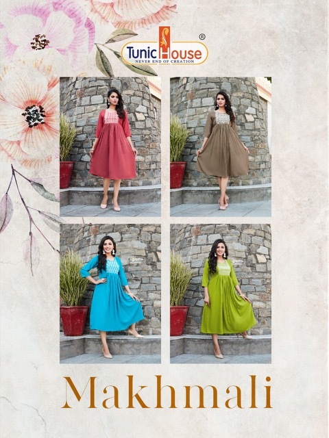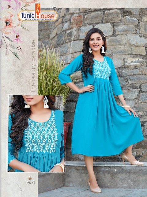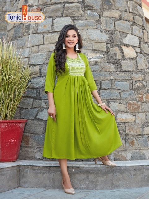 Mukhmali Kurti By Tunic House Designer With Embroidery Work Rayon With Falir Kurtis Are Available At Wholesale Price