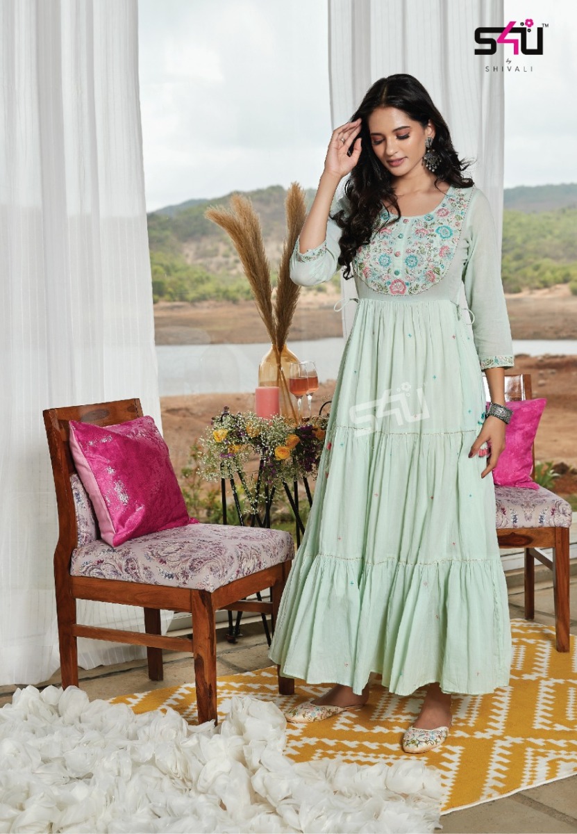 Mul Mul Gown By S4u Designer With Embroidery And Hand Work Long Pure Cotton Gowns Are Available At Wholesale Price