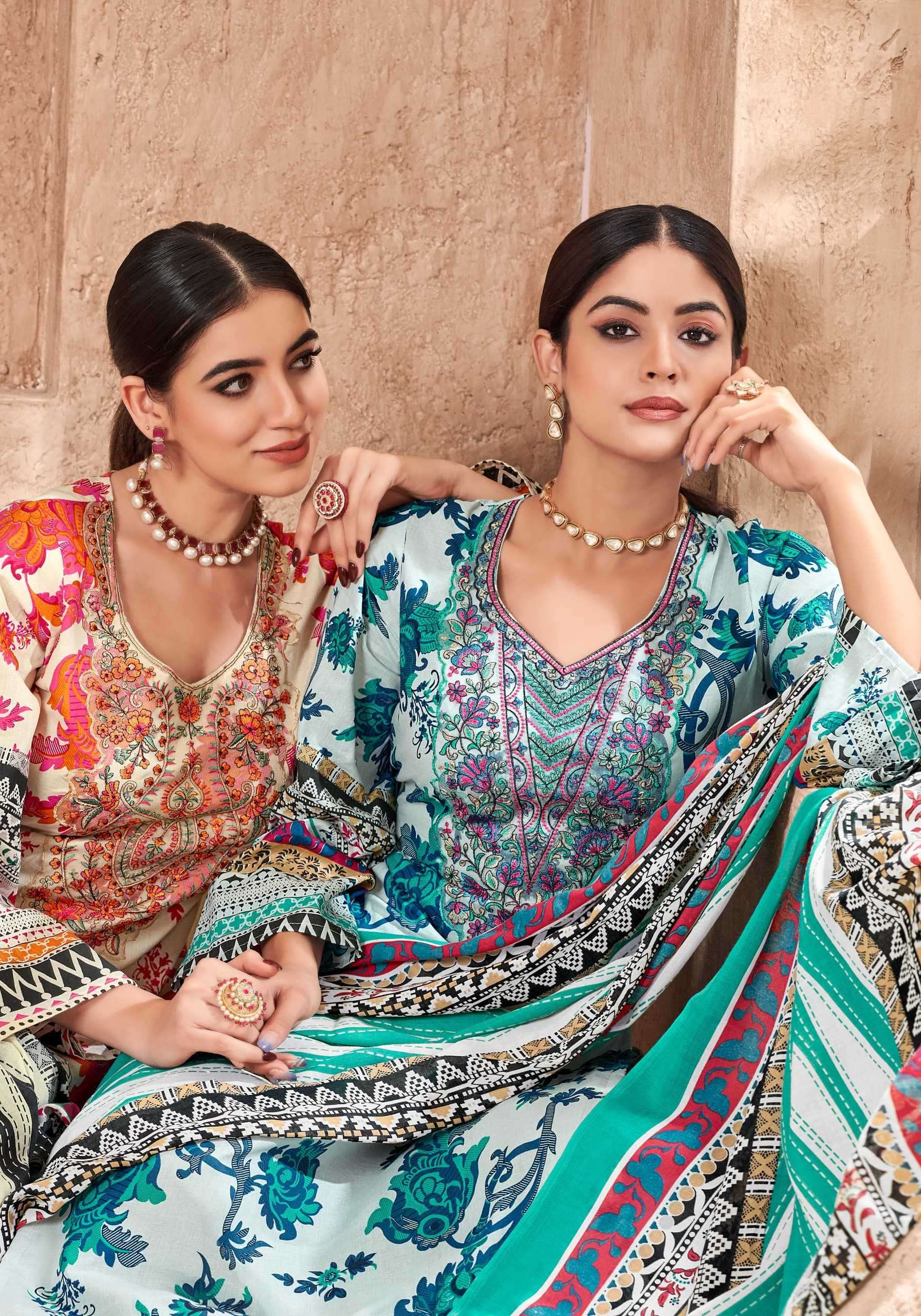 TOP - Pure Cambric Pakishtani Print With Fancy Embroidery With Daman Embroidery Lace