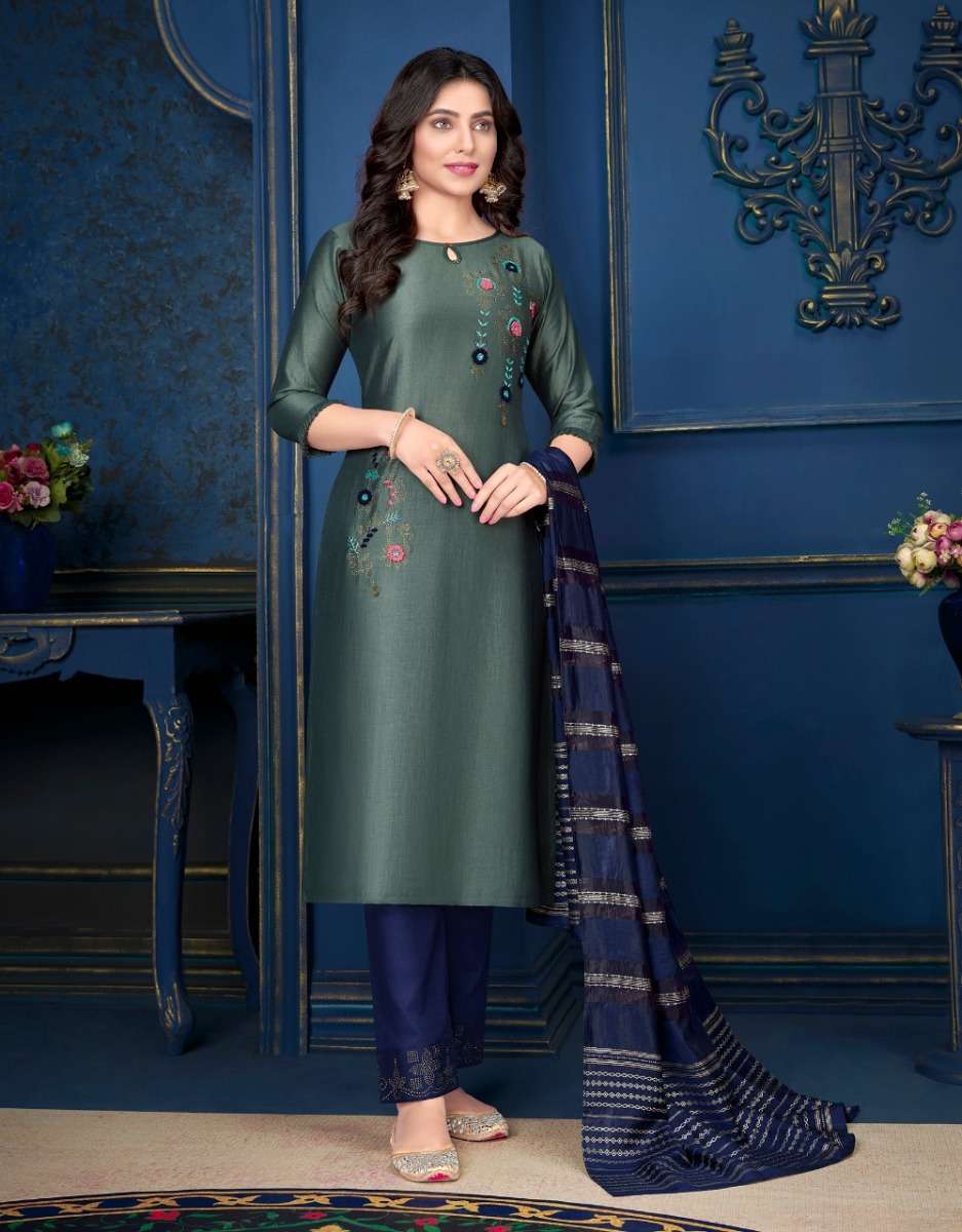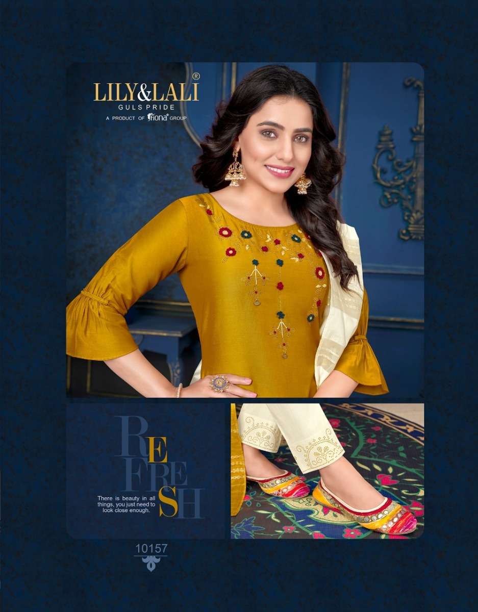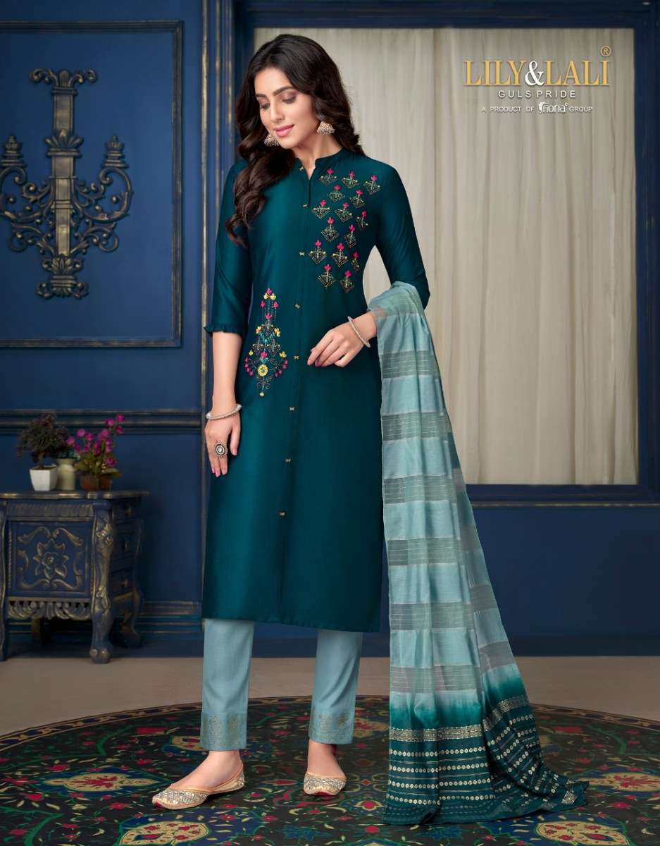 MUSKAN VOL-3 KURTI BY LILY & LALI DESIGNER WITH WORK SILK KURTI WITH BOTTOM AND DUPATTA ARE AVAILABLE AT WHOLESALE PRICE