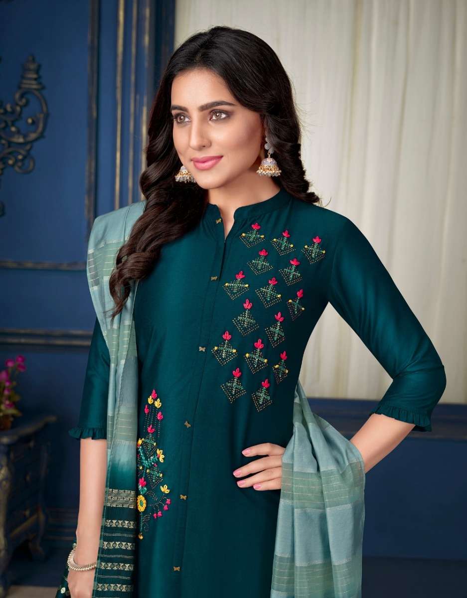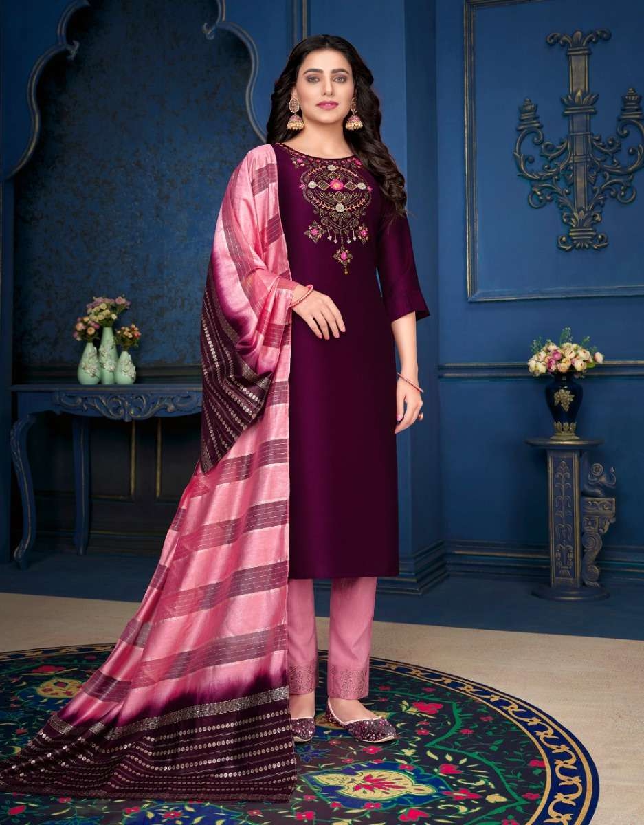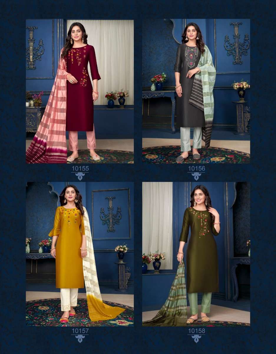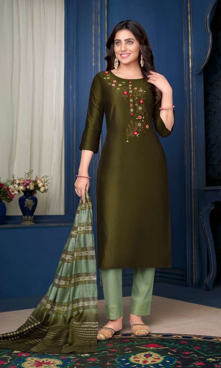 MUSKAN VOL-3 KURTI BY LILY & LALI DESIGNER WITH WORK SILK KURTI WITH BOTTOM AND DUPATTA ARE AVAILABLE AT WHOLESALE PRICE
