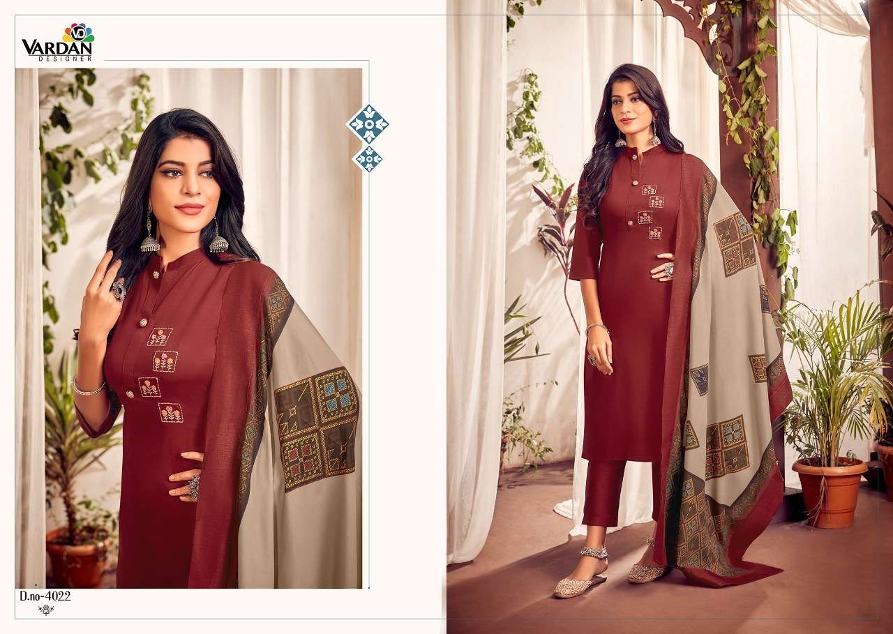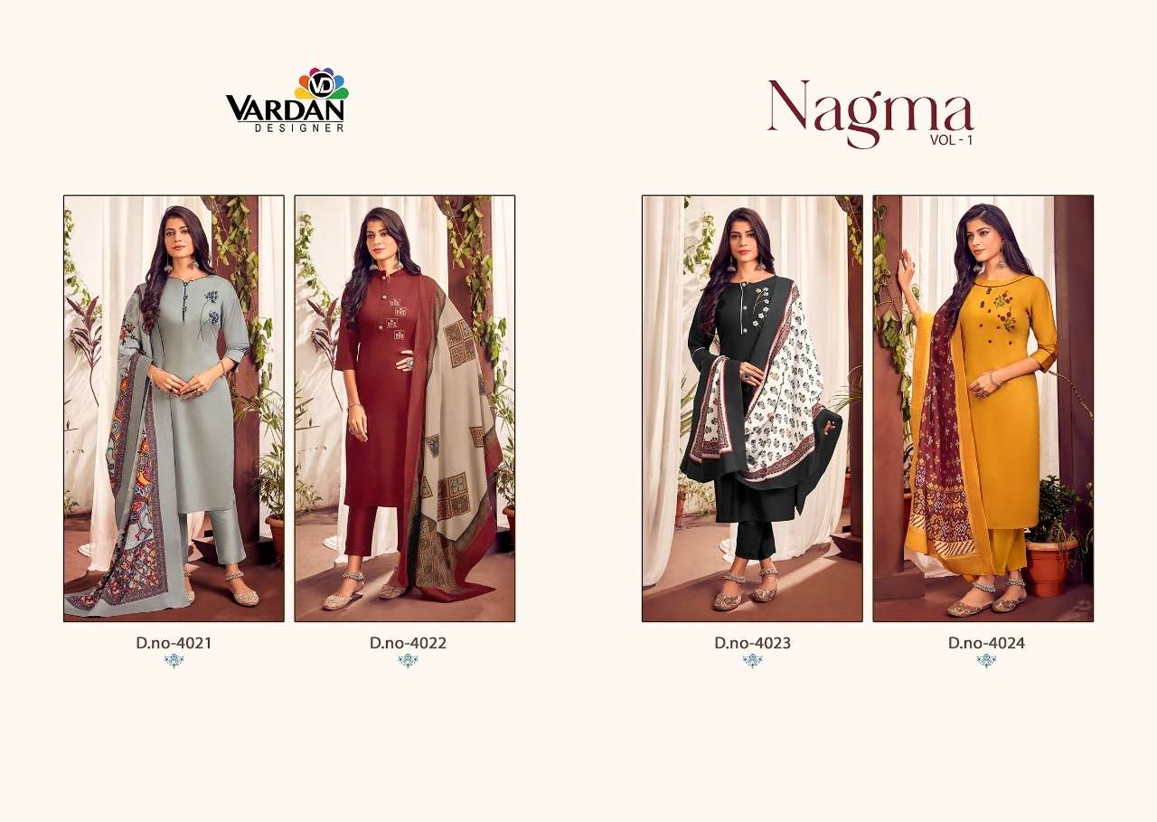 NAGMA VOL-1 BY VARDAN DESIGNER WITH W0RK JAM COTTON KURTI WITH PANT AND DUPATTA ARE AVAILABLE AT WHOLESALE PRICE