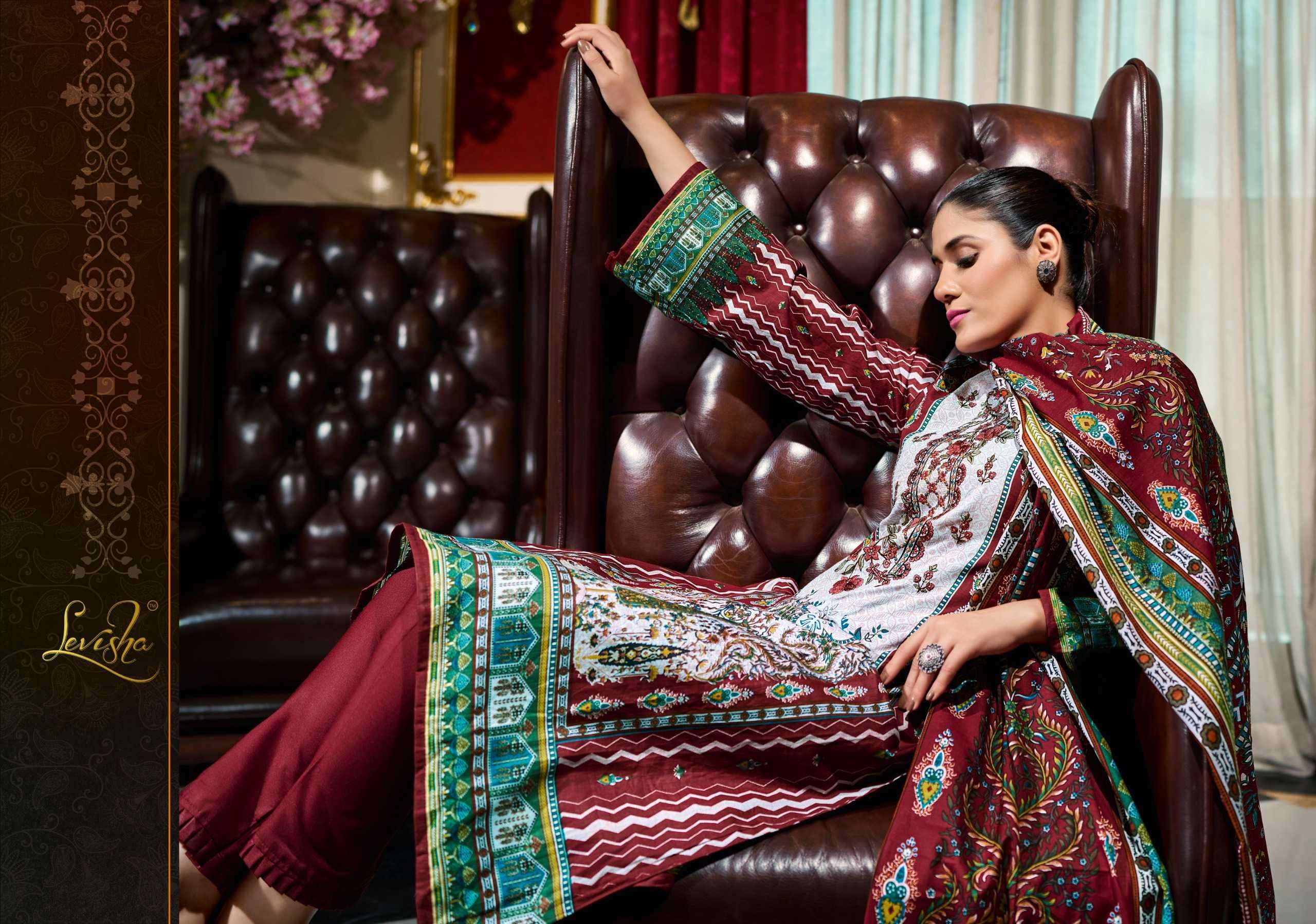 TOP - Cambric Cotton Pakistani Style Print with Fancy Self Embroidery