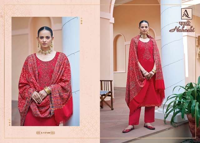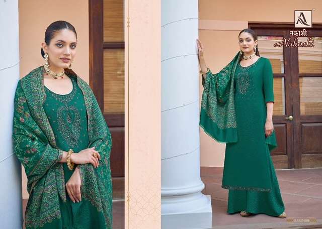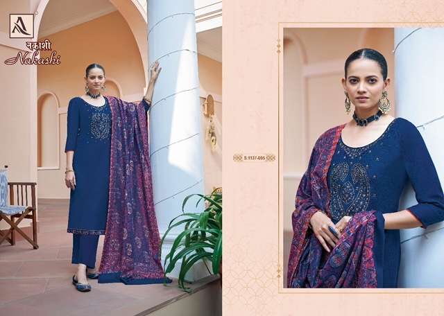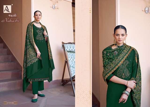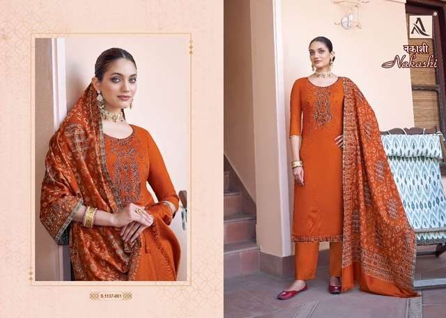 NAKASHI1137 SERIES BY ALOK SUITS DESIFBER WITH PRINTED PASHMINA SUITS ARE AVAILABE AT WHOLESALE PRICE