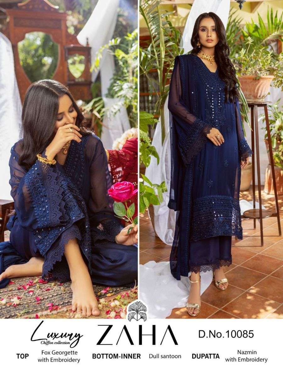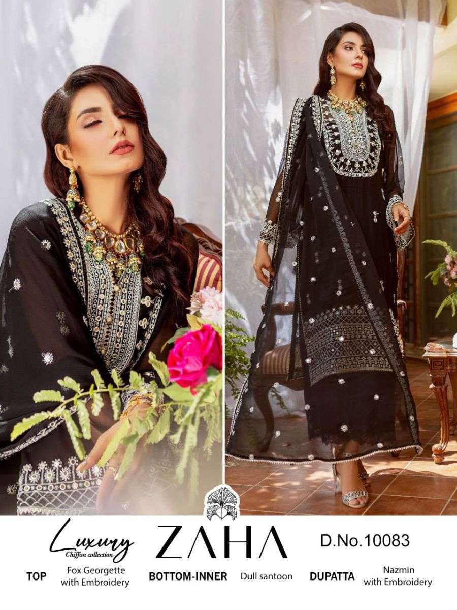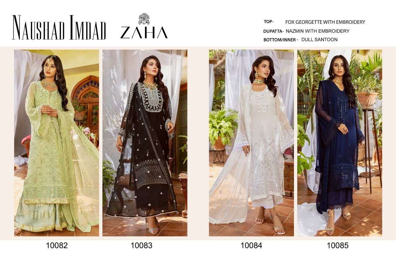 NAUSHAD IMDAD BY ZAHA DESIGNER WITH WORK GEORGETTE PAKISTANI STYLE SUITS ARE AVAILABLE AT WHOLESALE PRICE