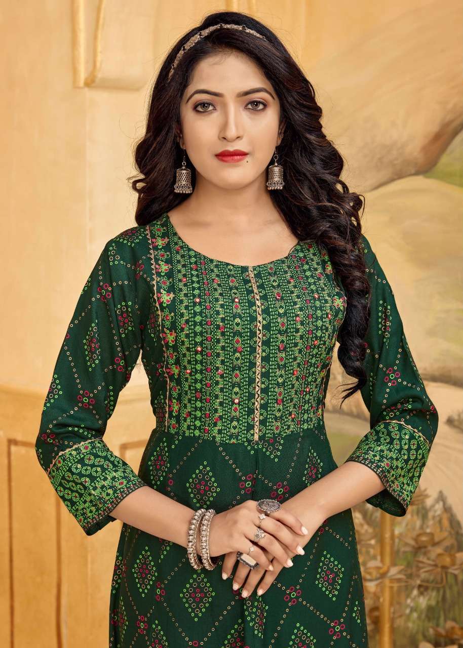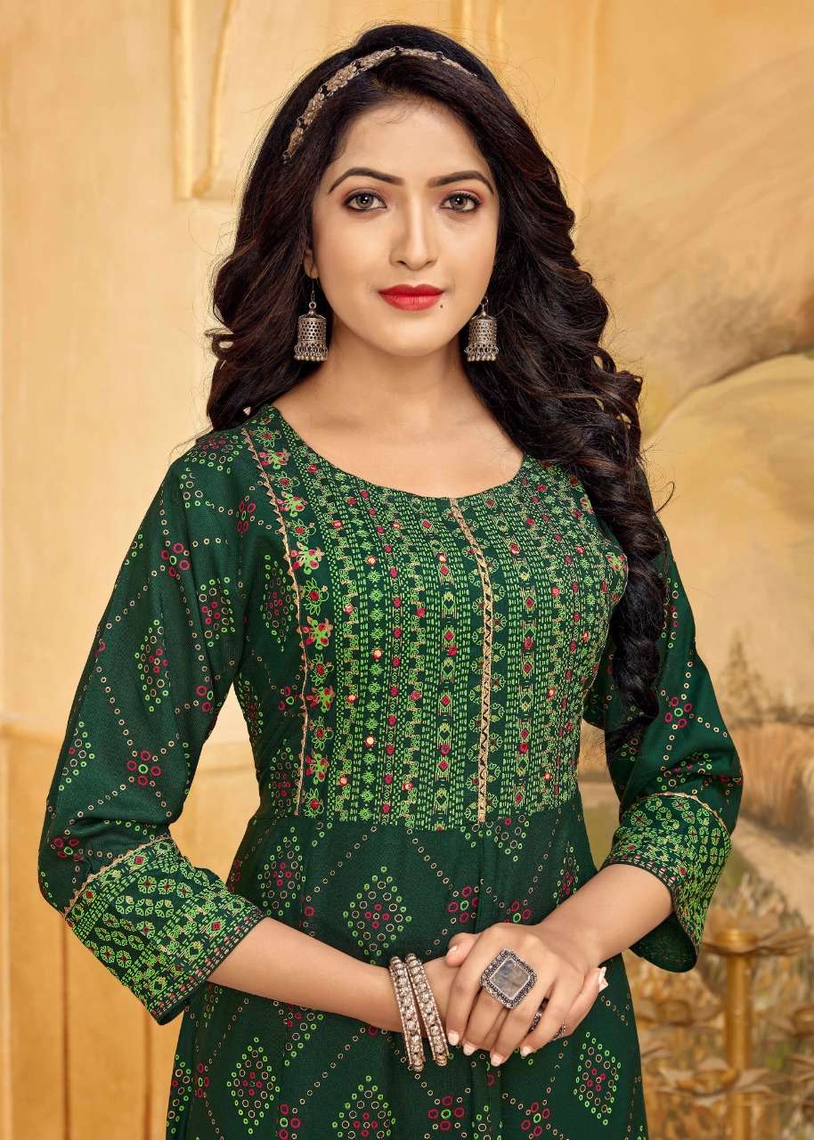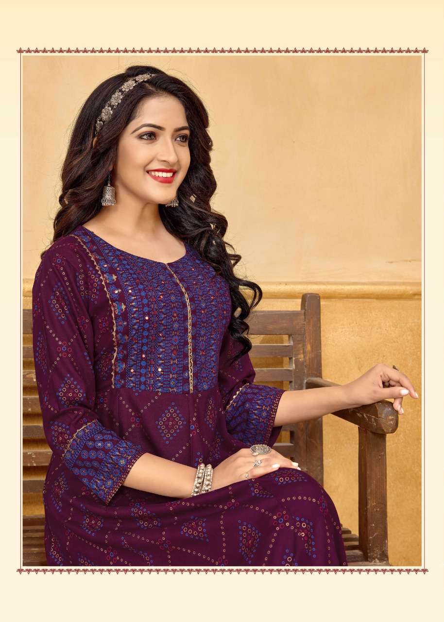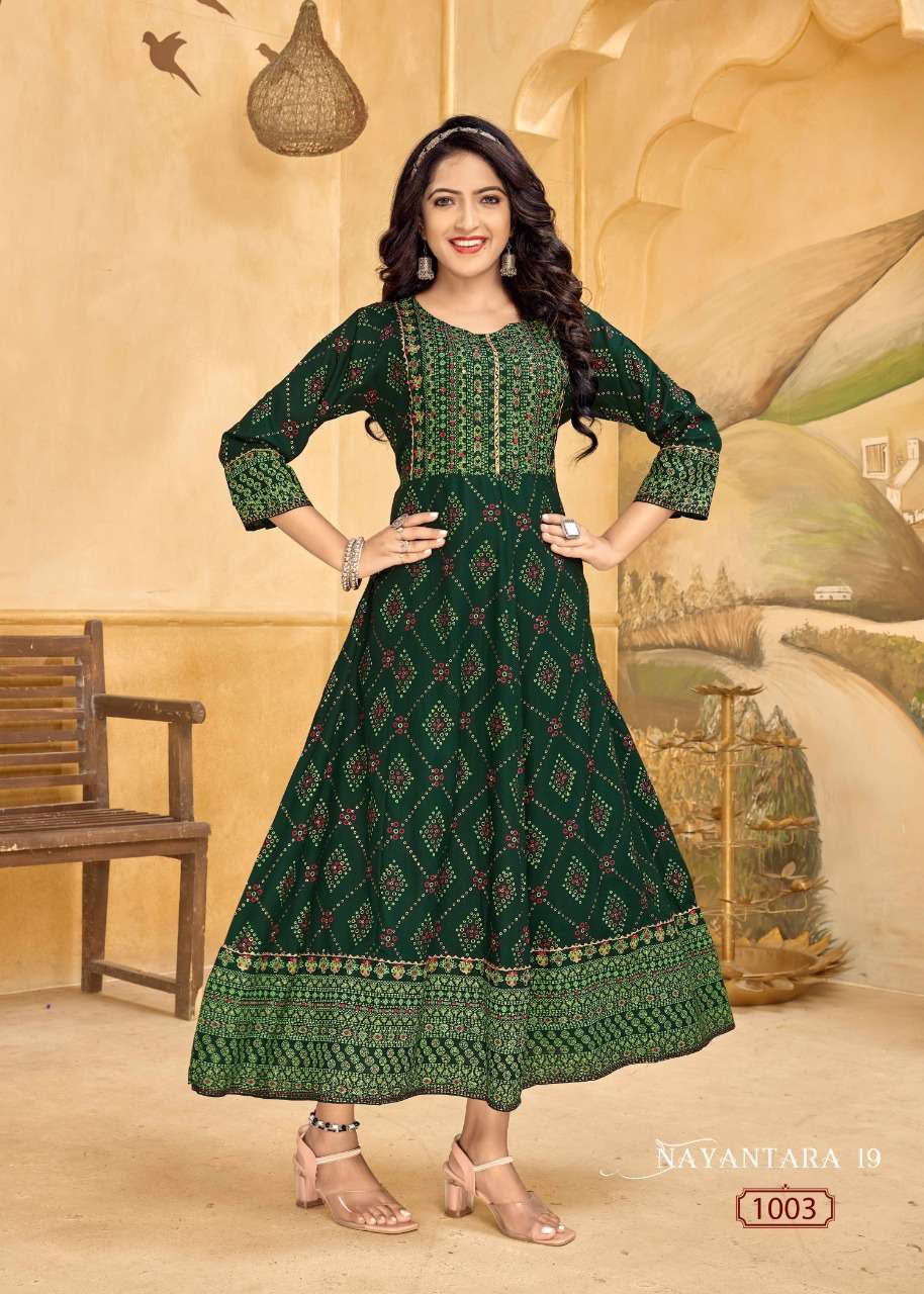 NAYANTHATA VOL-19 KURTI BY BANWERY DESIGNER WITH FOIL PRINTED RAYON KURTIS ARE AVAILABLE AT WHOLESALE PRICE