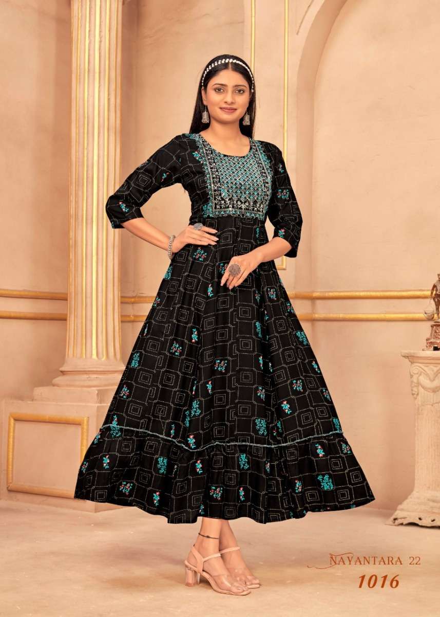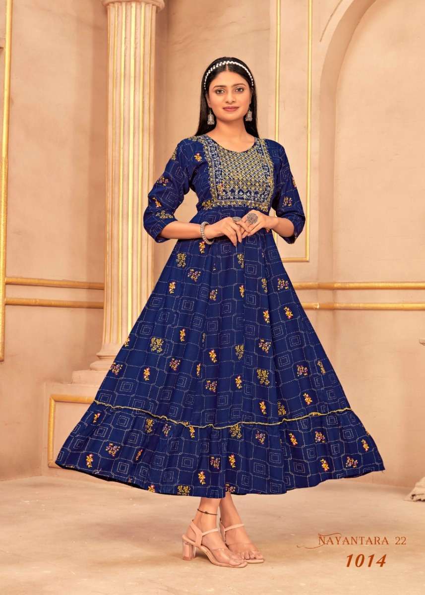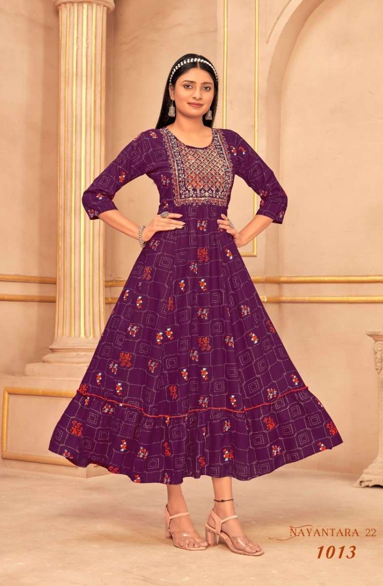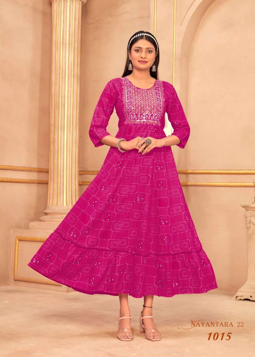 NAYANTHATA VOL-22 KURTI BY BANWERY DESIGNER WITH FOIL PRINTED RAYON KURTIS ARE AVAILABLE AT WHOLESALE PRICE