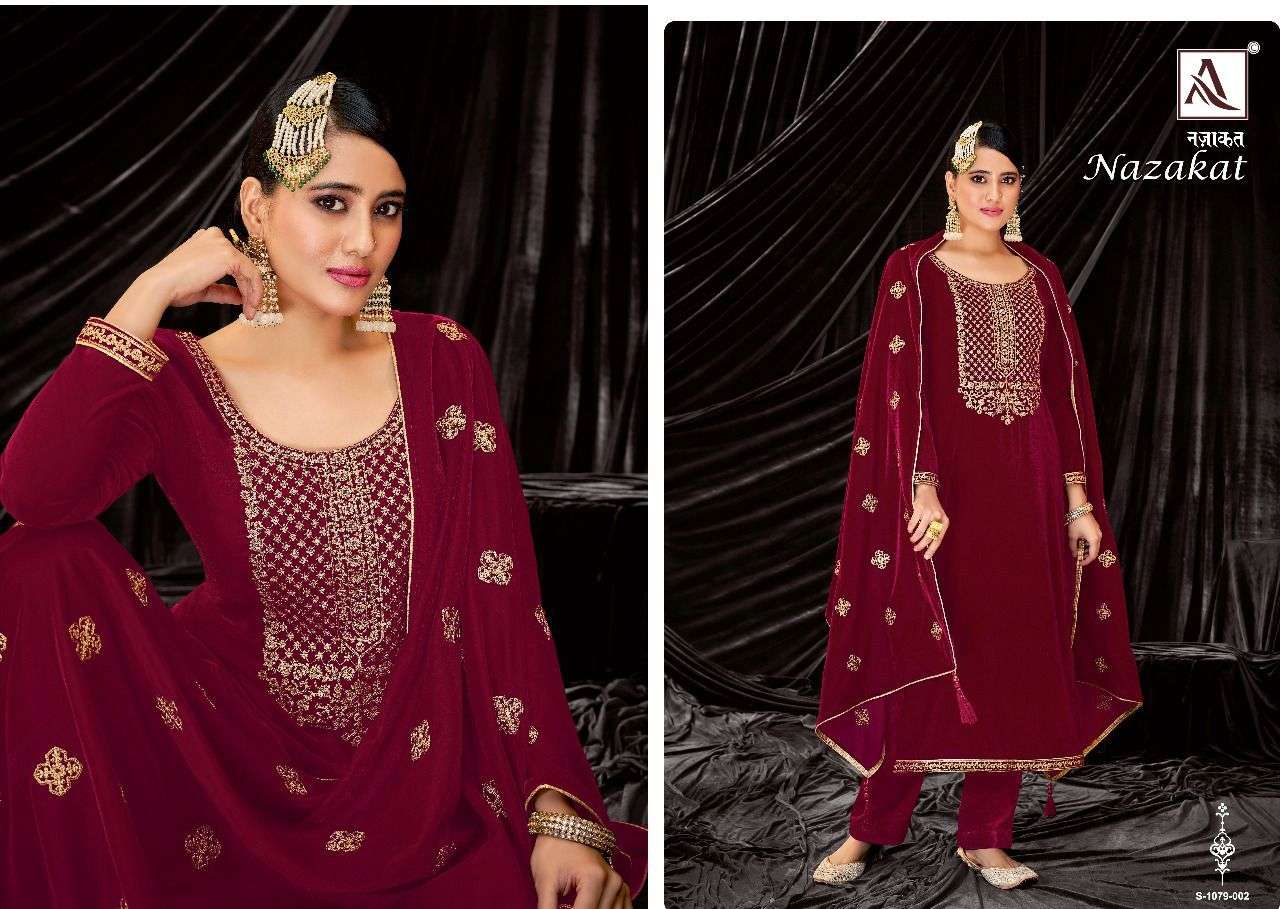 NAZAKAT BY ALOK SUITS DESIGNER WITH WORK VELVET SUITS ARE AVAILABLE AT WHOLESALE PRICE