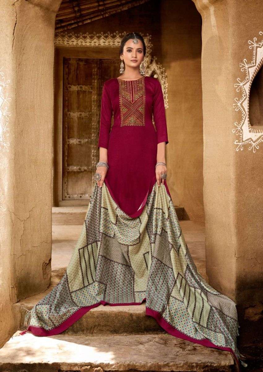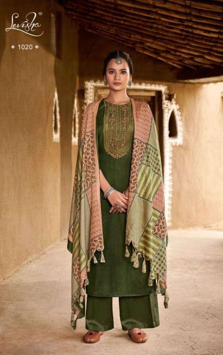 NAZIYA BY LEVISHA DESIGNER WITH PRINTED PASHMINA SUITS ARE AVAILABLE AT WHOLESALE PRICE