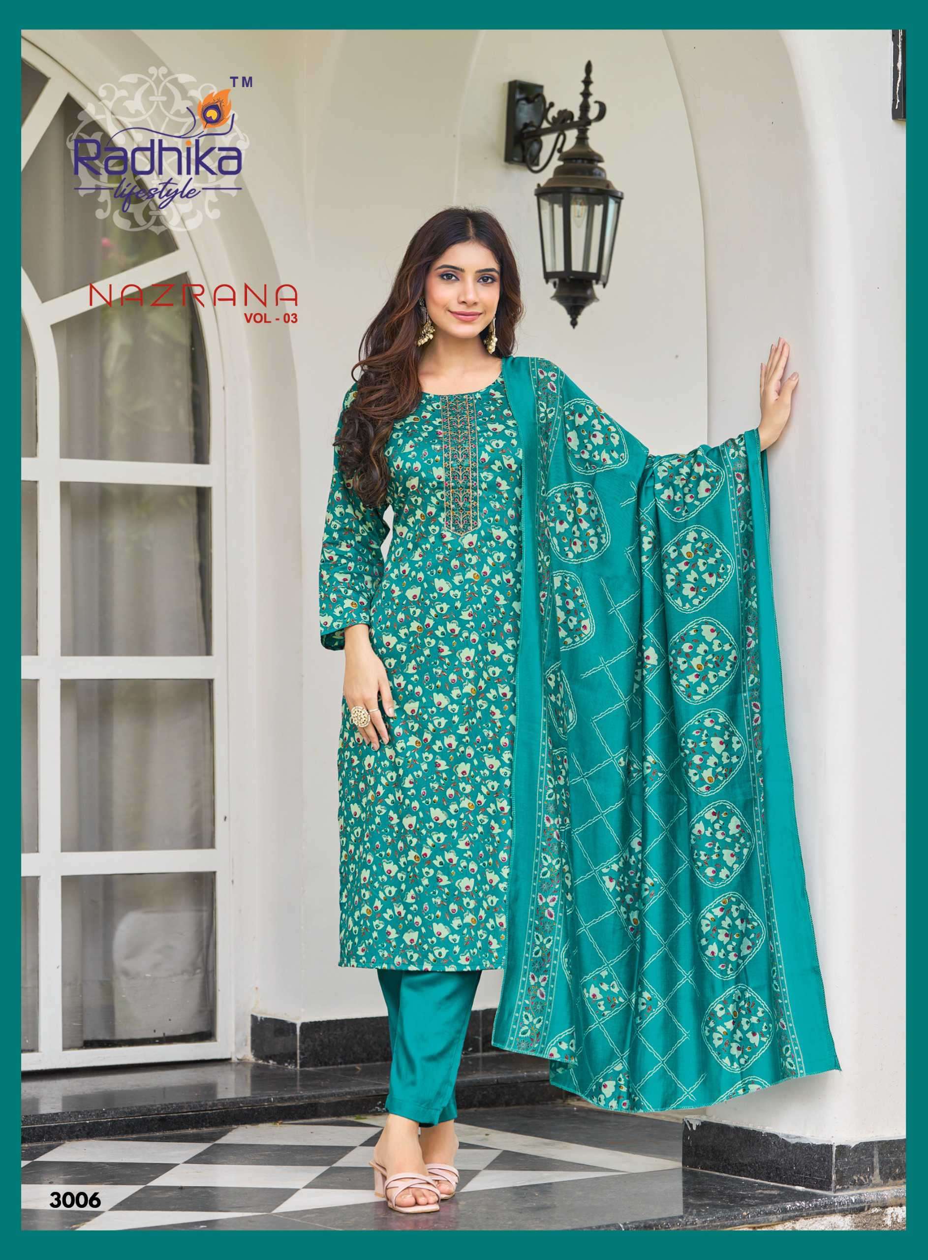 | Name: | radhika lifestyle-NAZRANA VOL-3 SERIES 3001 TO 3006 BY RADHIKA LIFESTYLE |