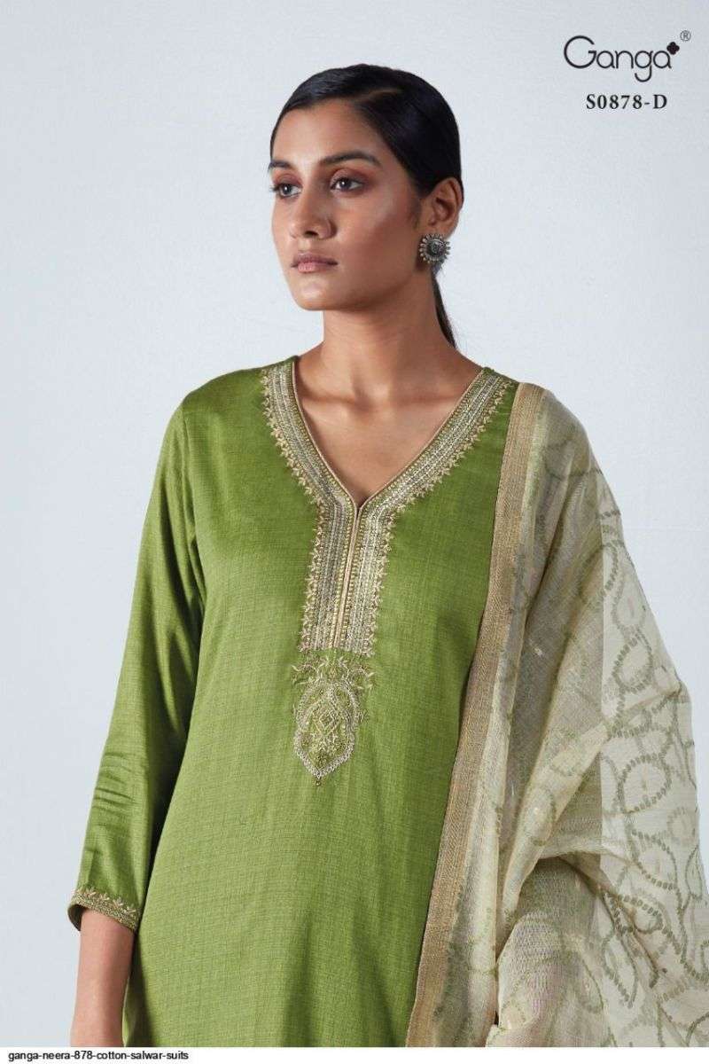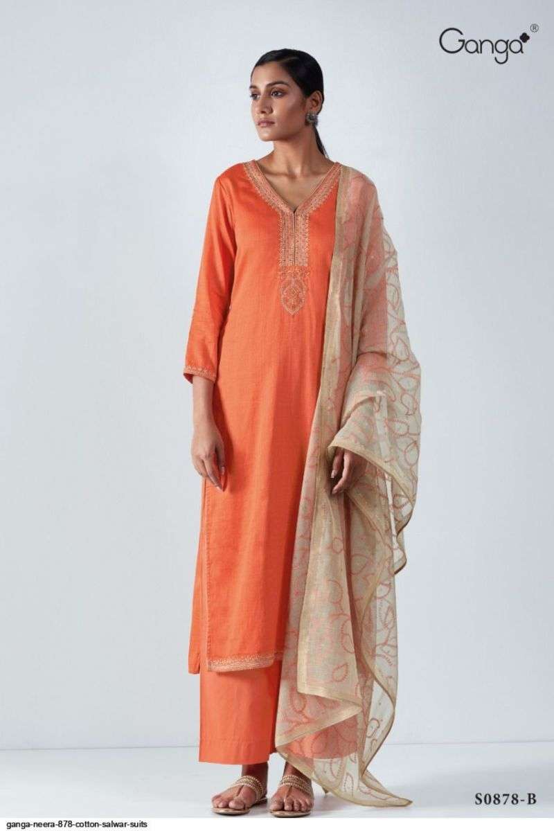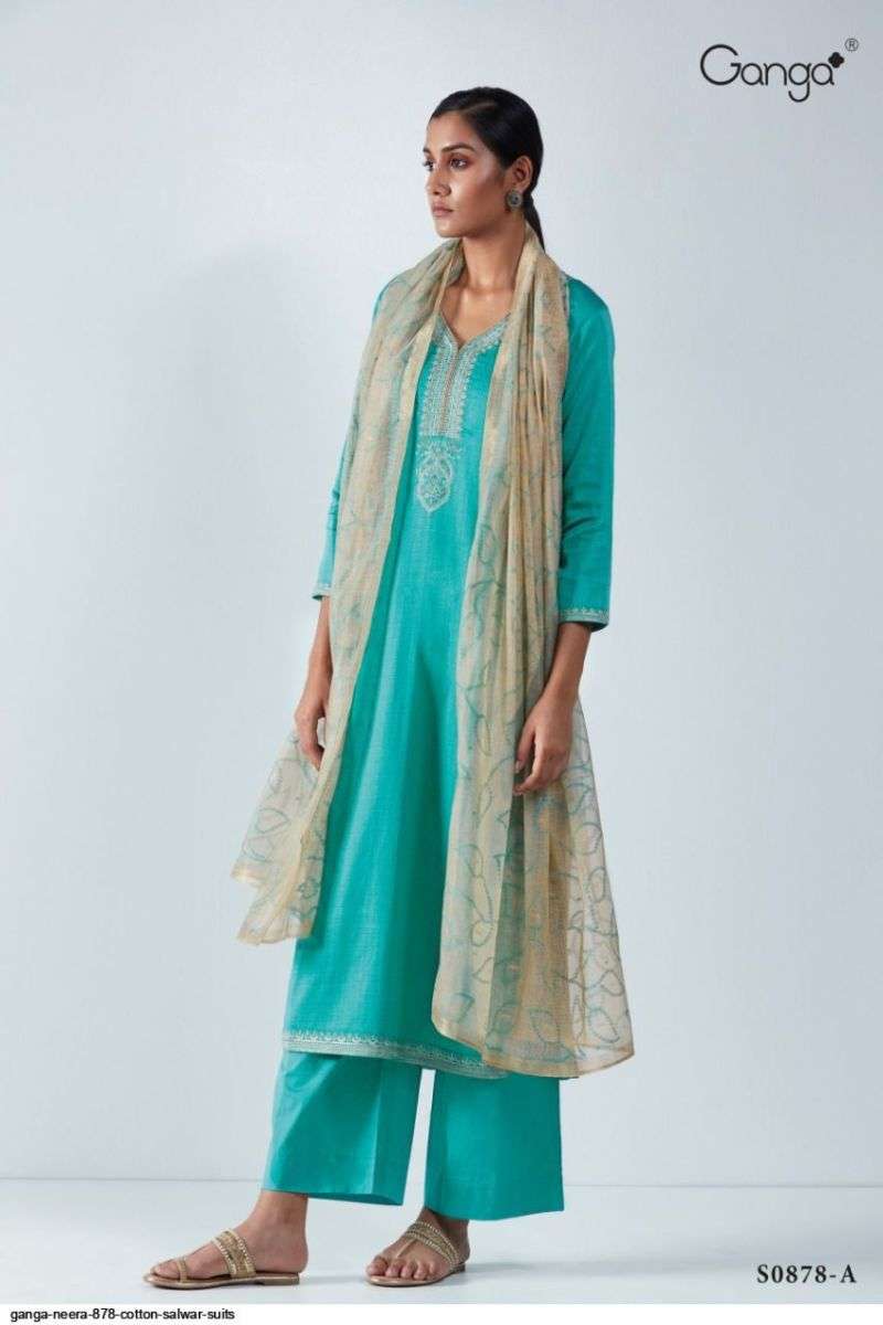 NEERA S0878 BY GANGA DESIGNER WITH EMBROIDERY WORK COTTON SATIN SUITS ARE AVAILABLE AT WHOLESALE PRICE