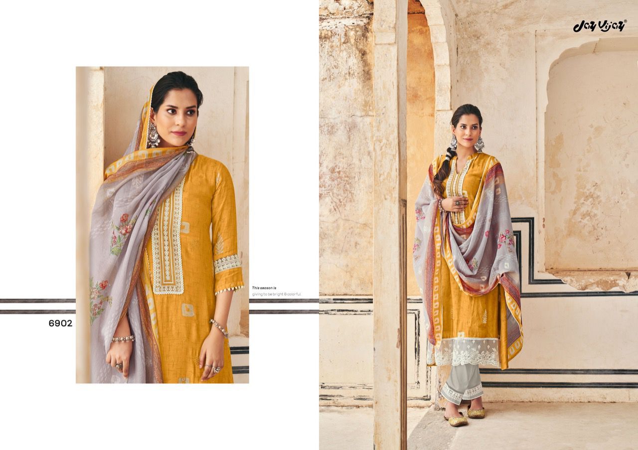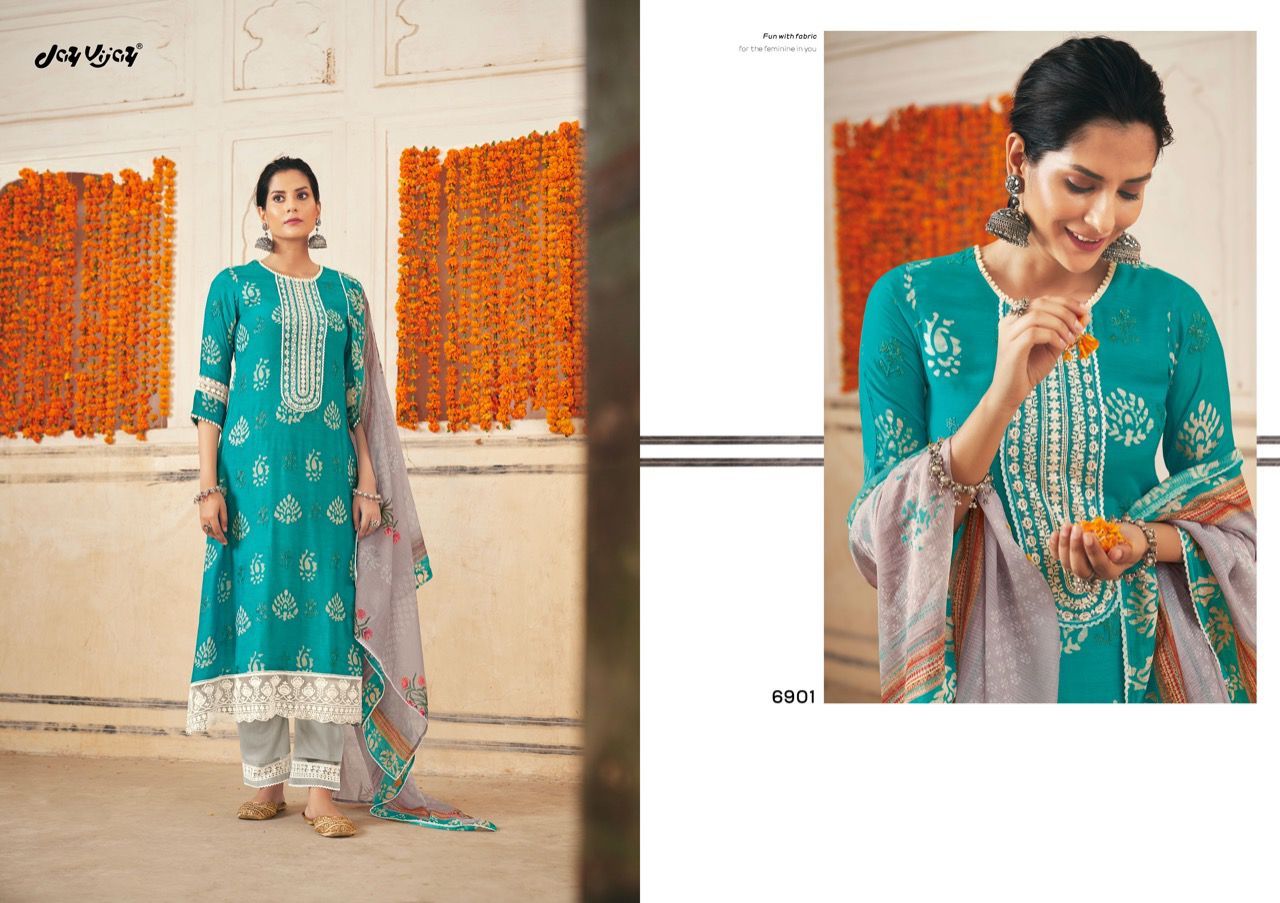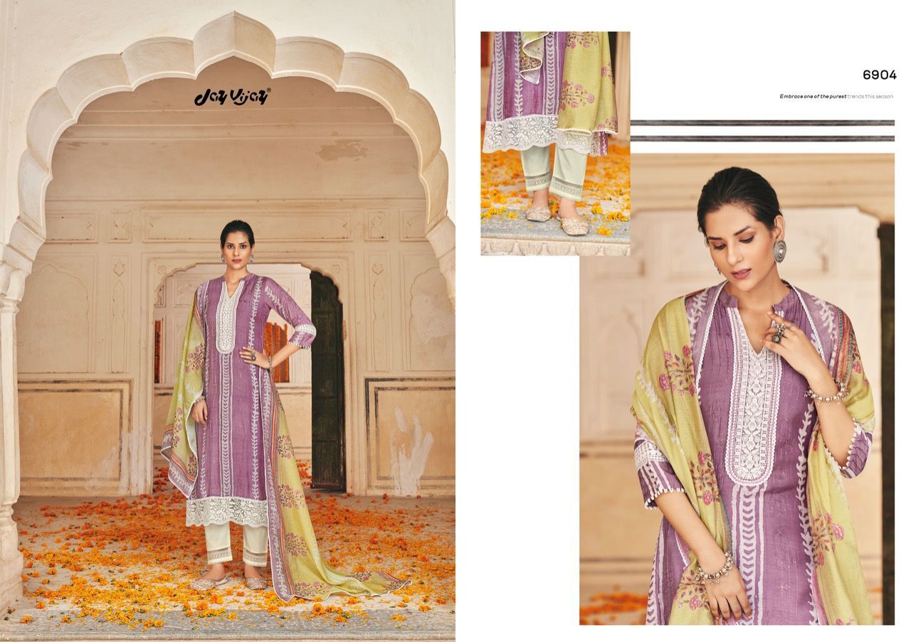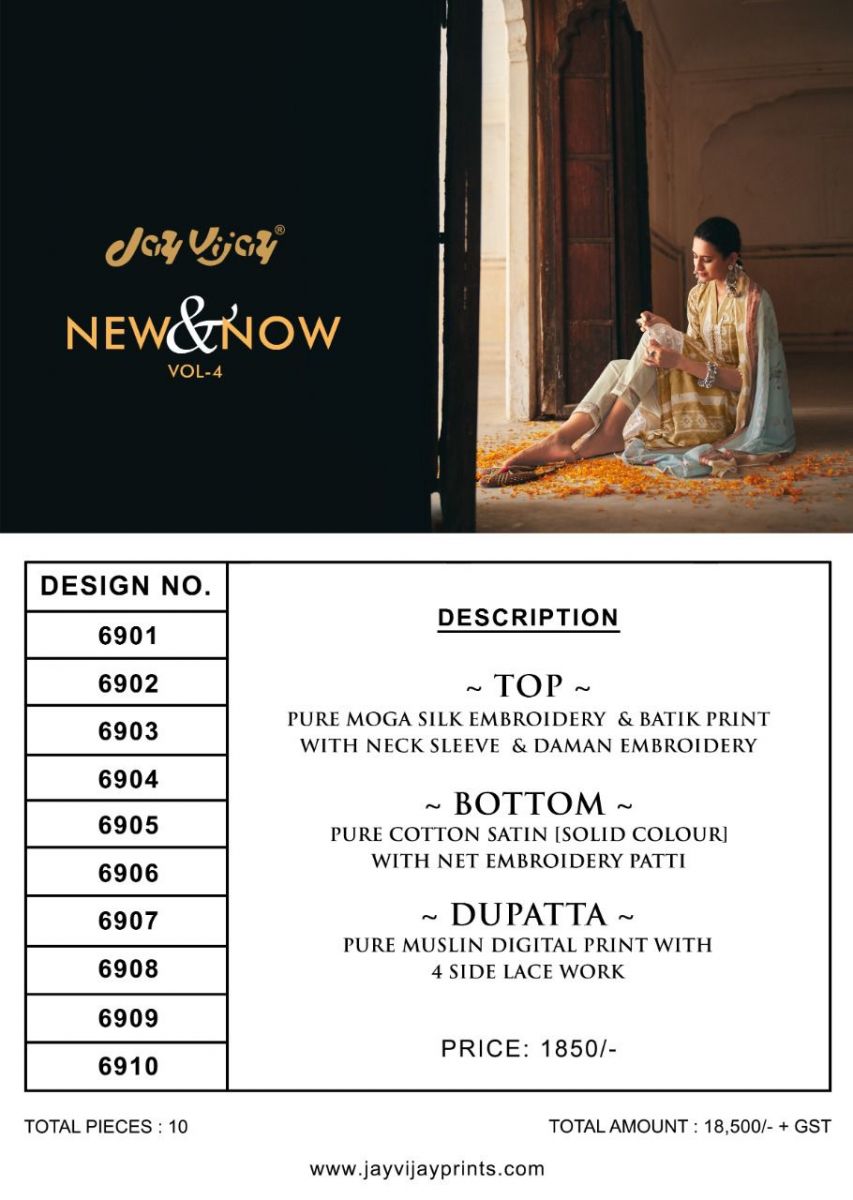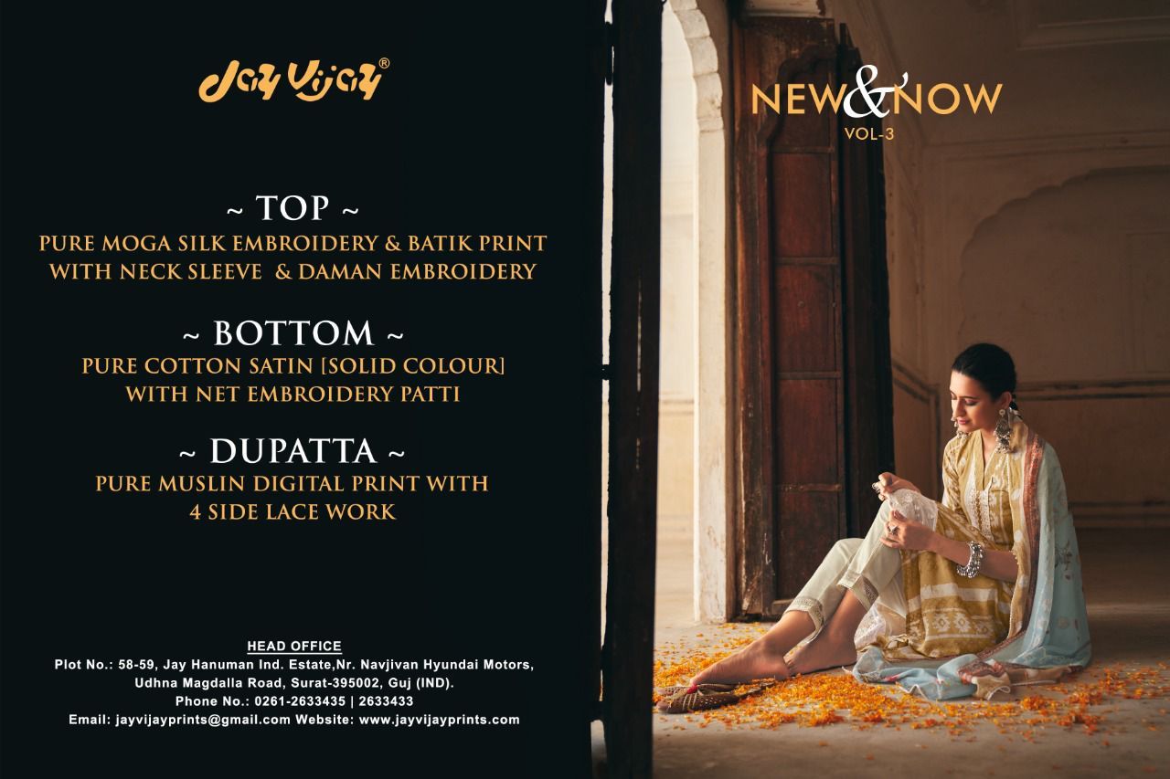New & Now Vol-4 By Jay Vijay Designer Wityh Batik Print And Embroidery Work Moga Silk Suits Are Available At Wholesale Price