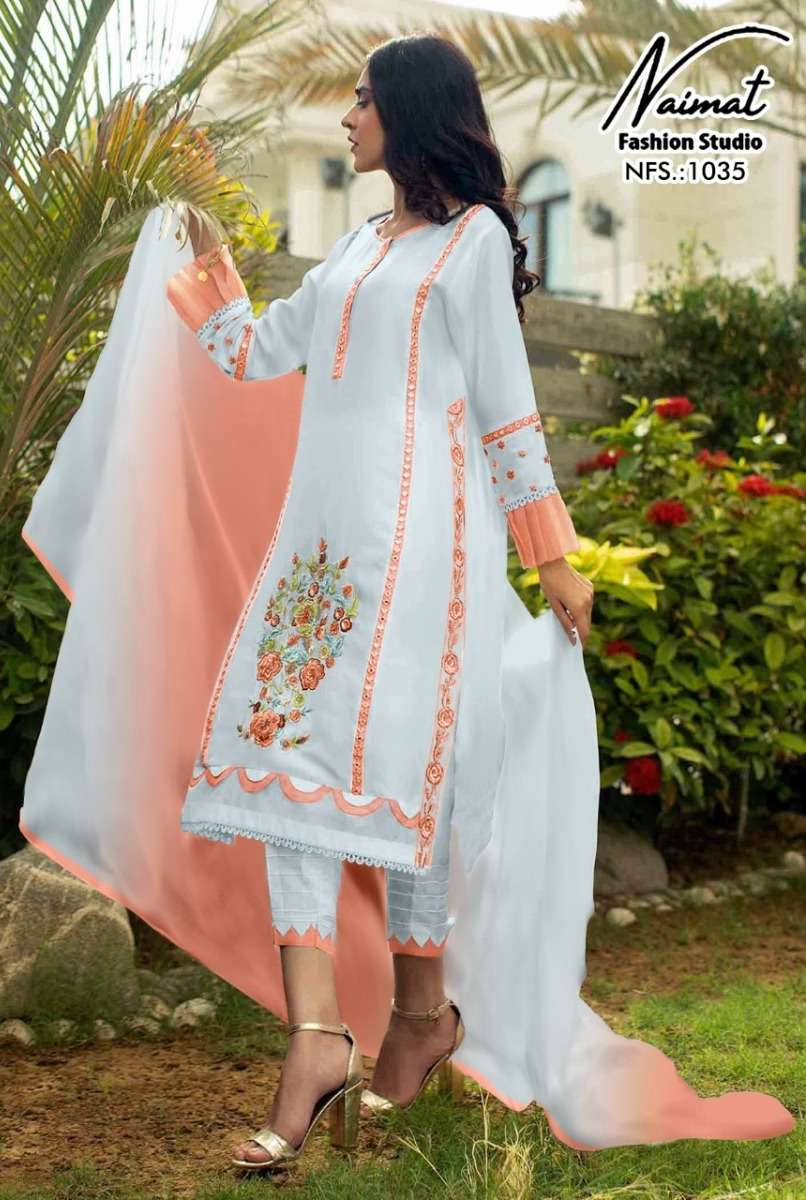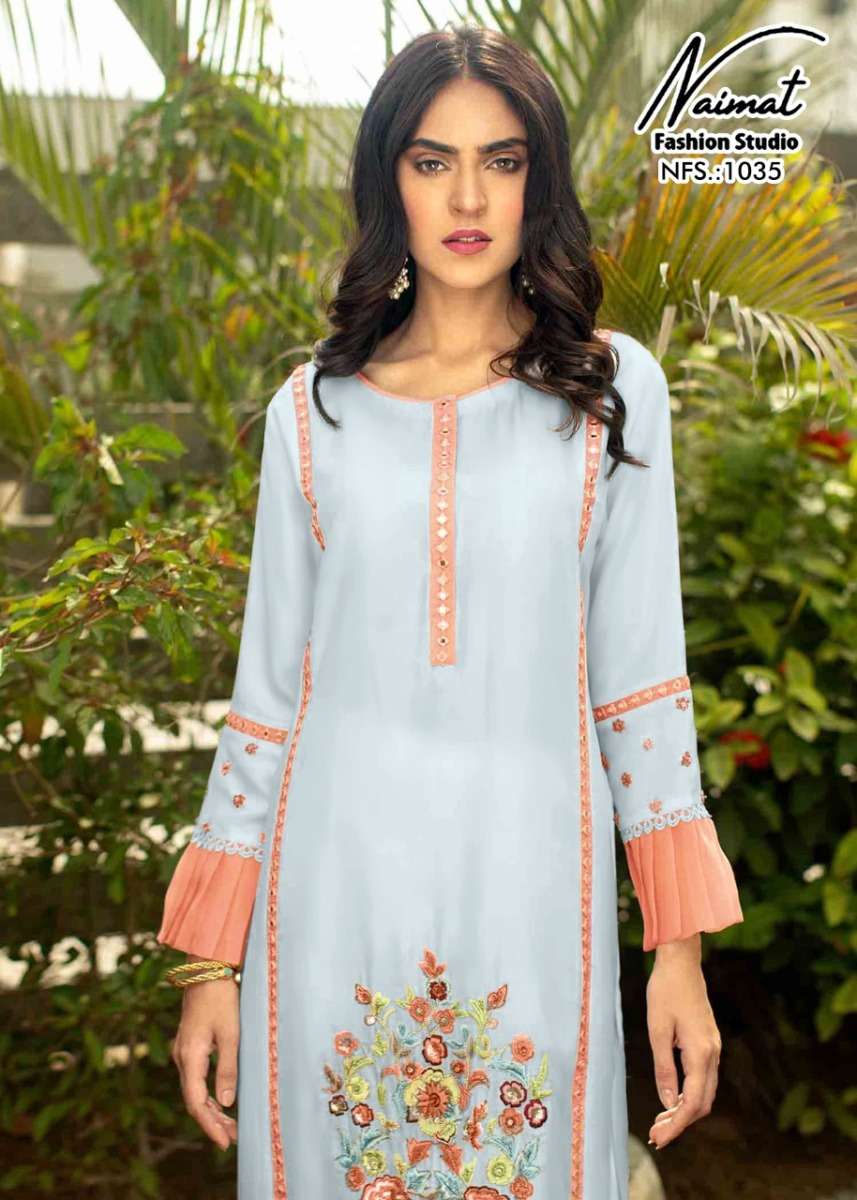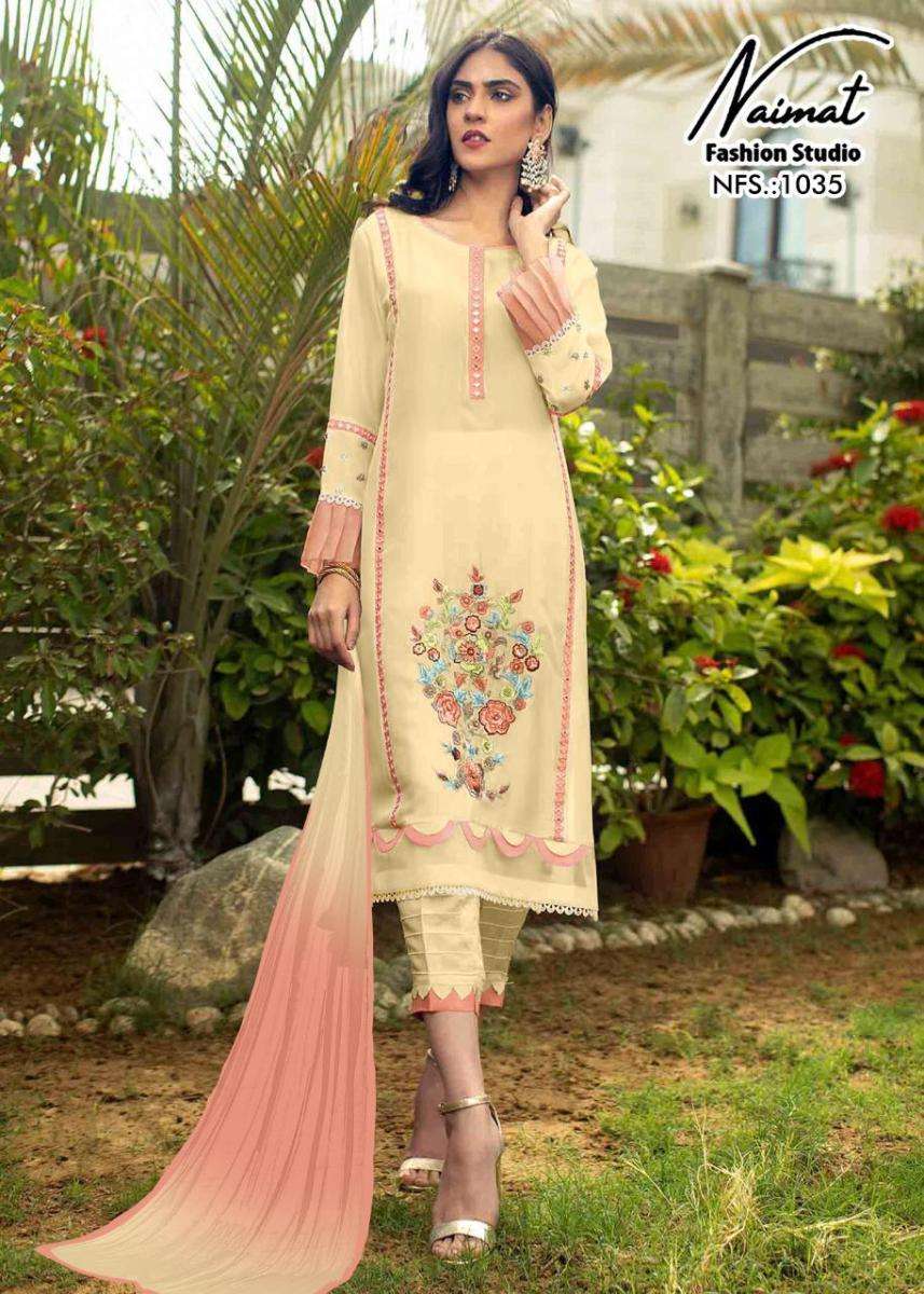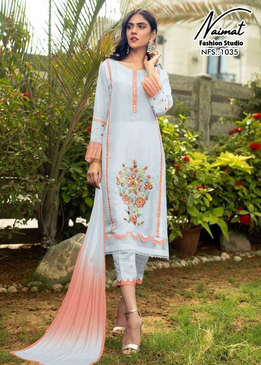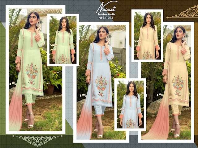 NFS 1035 SERIES DESIGNER WITH WORK GEORGETTE PAKISTANI STYLE KURTI WITH PANT AND DUPATTA ARE AVAILABLE AT WHOLESALE PRICE