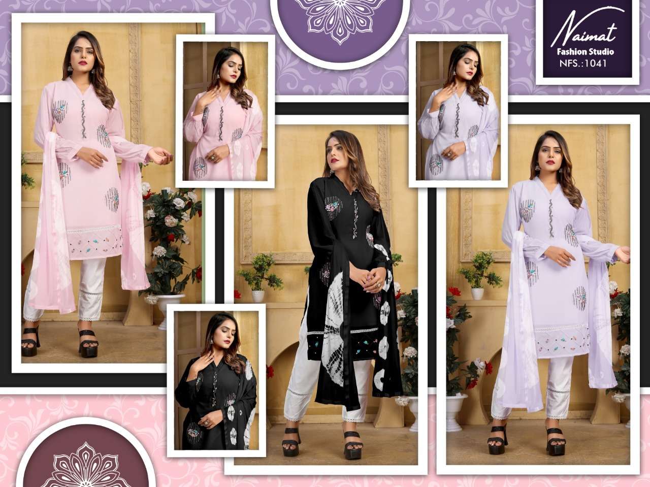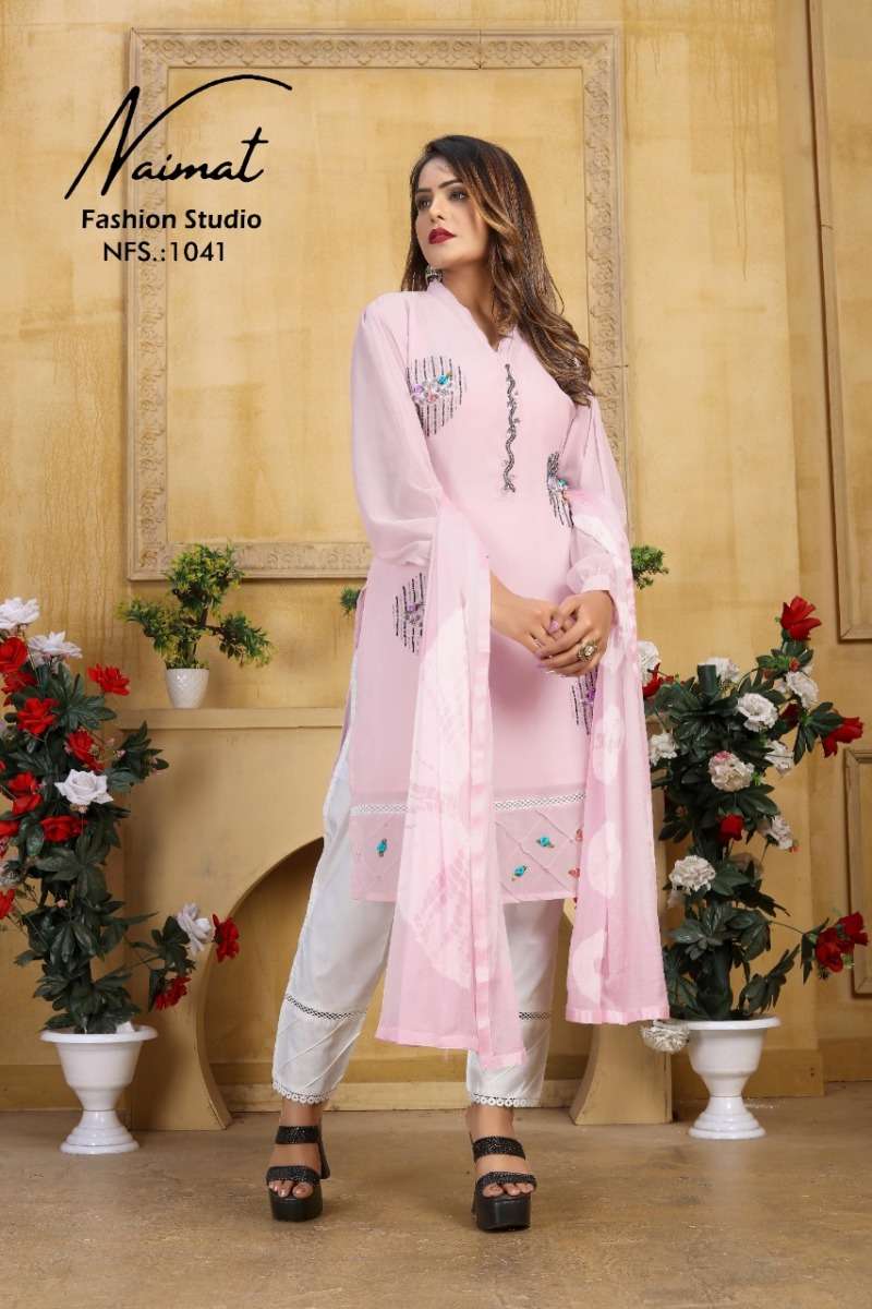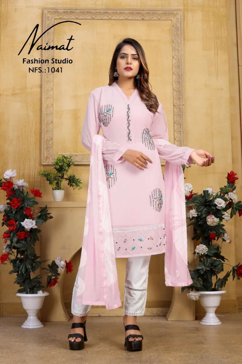NFS 1041 SERIES DESIGNER WITH WORK GEORGETTE PAKISTANI STYLE KURTI WITH PANT AND DUPATTA ARE AVAILABLE AT WHOLESALE PRICE