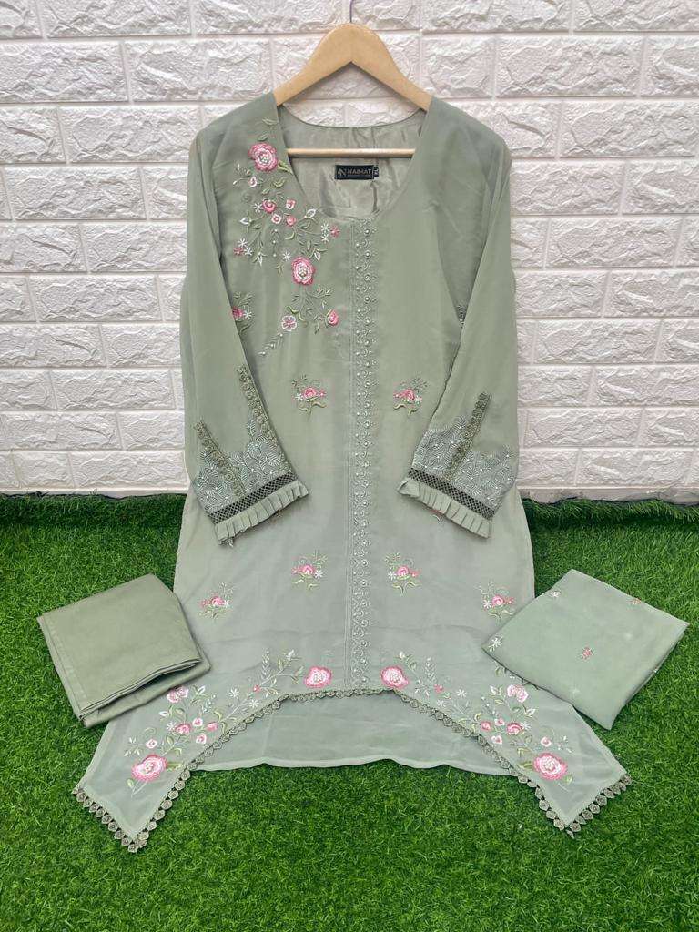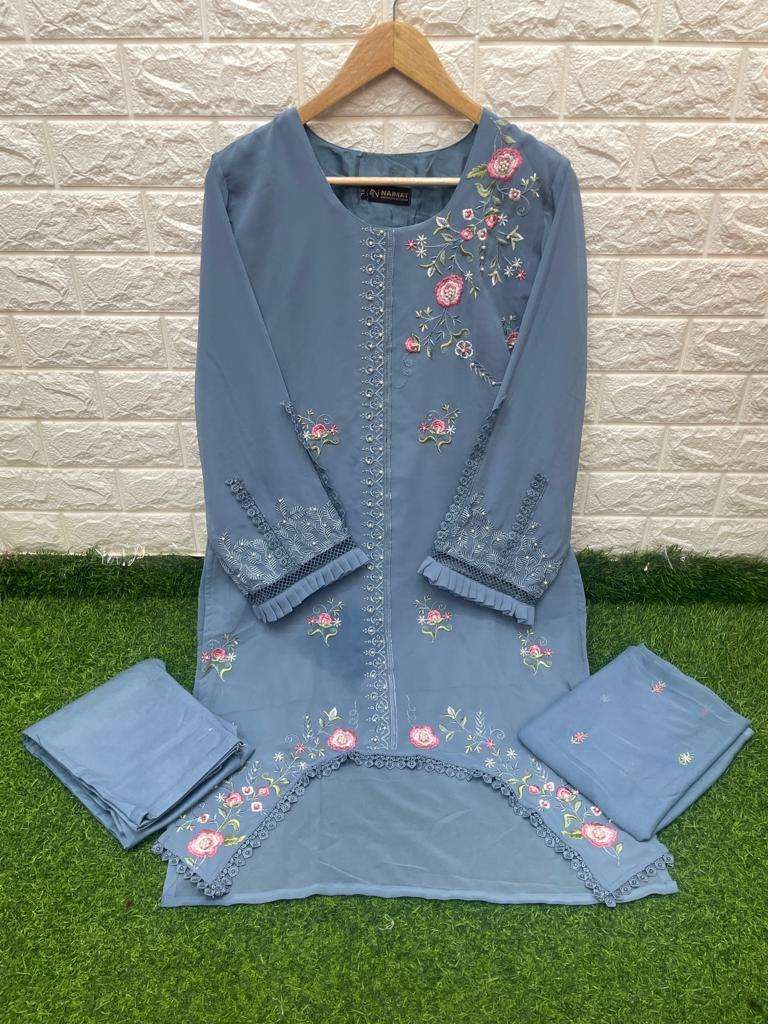NFS 1043 SERIES DESIGNER WITH WORK GEORGETTE PAKISTANI STYLE KURTI WITH PANT AND DUPATTA ARE AVAILABLE AT WHOLESALE PRICE