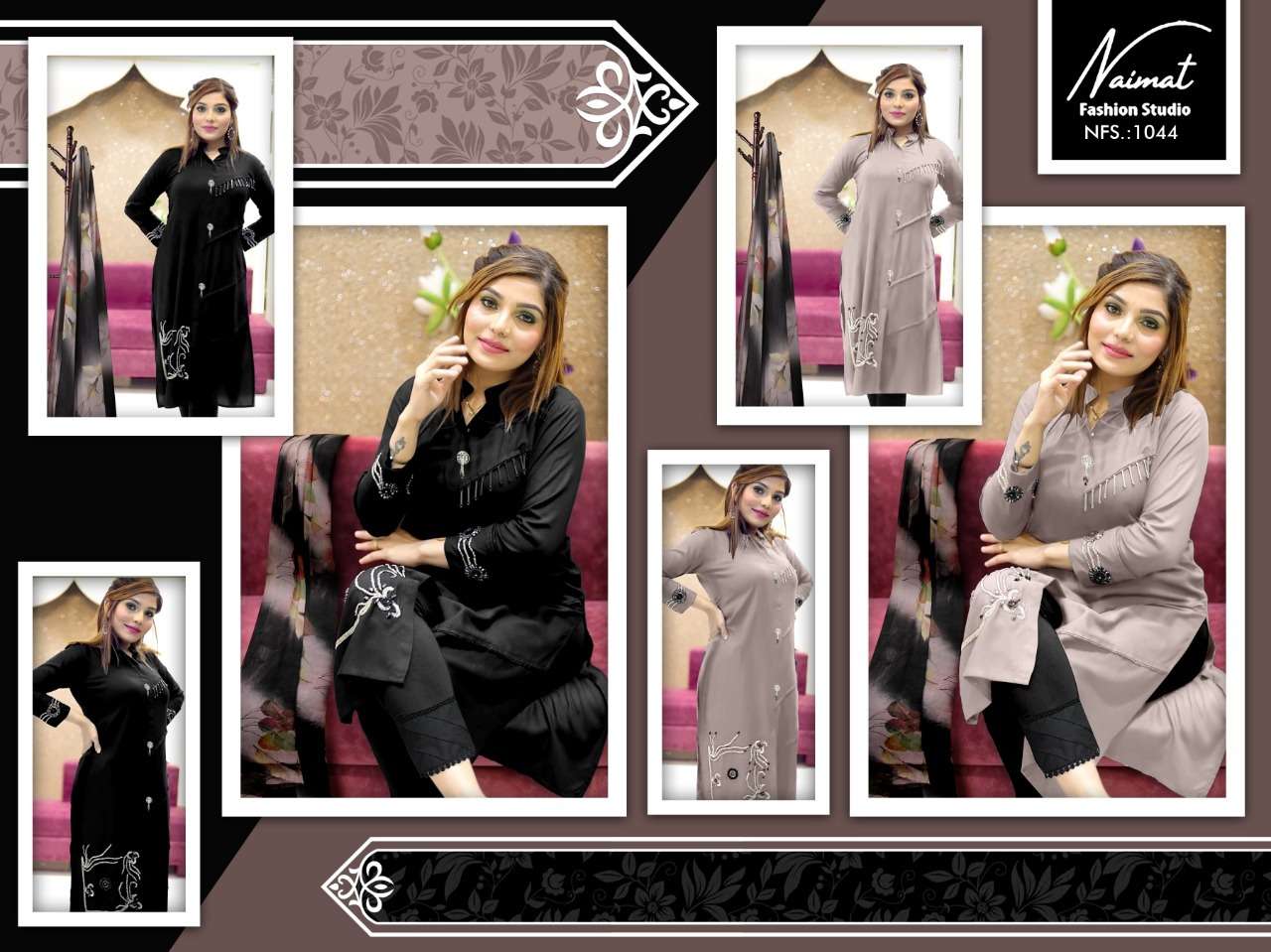 NFS 1044 SERIES DESIGNER WITH WORK GEORGETTE PAKISTANI STYLE KURTI WITH PANT AND DUPATTA ARE AVAILABLE AT WHOLESALE PRICE