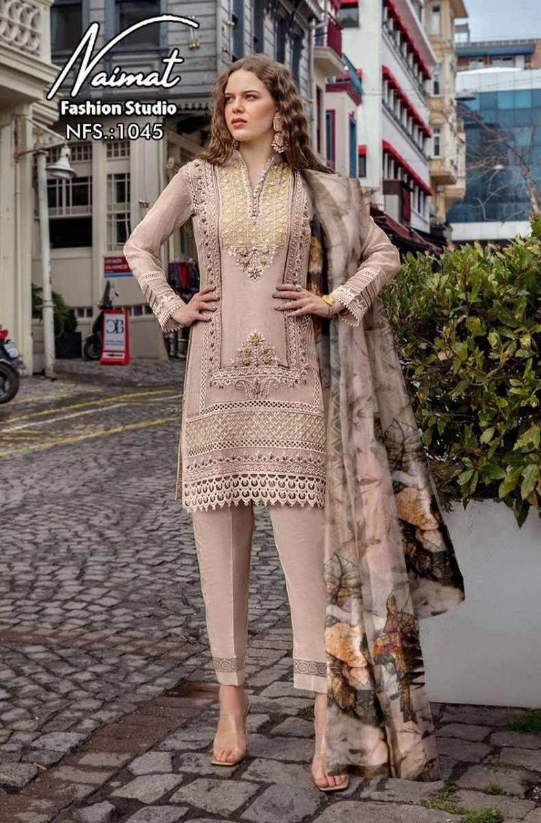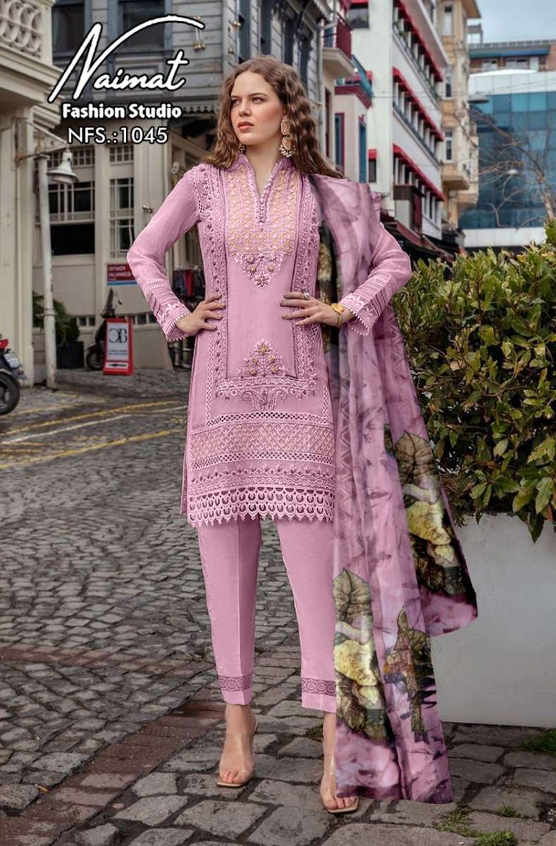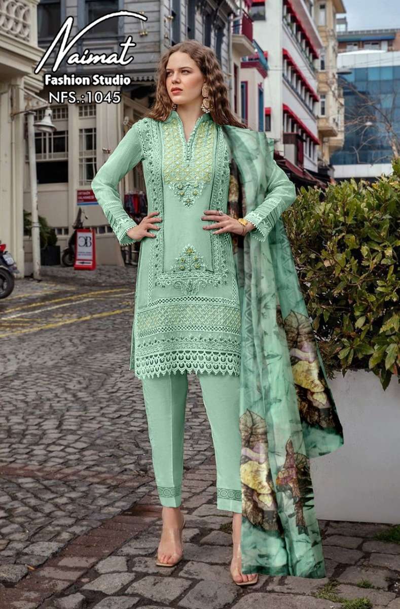 NFS 1045 SERIES DESIGNER WITH WORK GEORGETTE PAKISTANI STYLE KURTI WITH PANT AND DUPATTA ARE AVAILABLE AT WHOLESALE PRICE