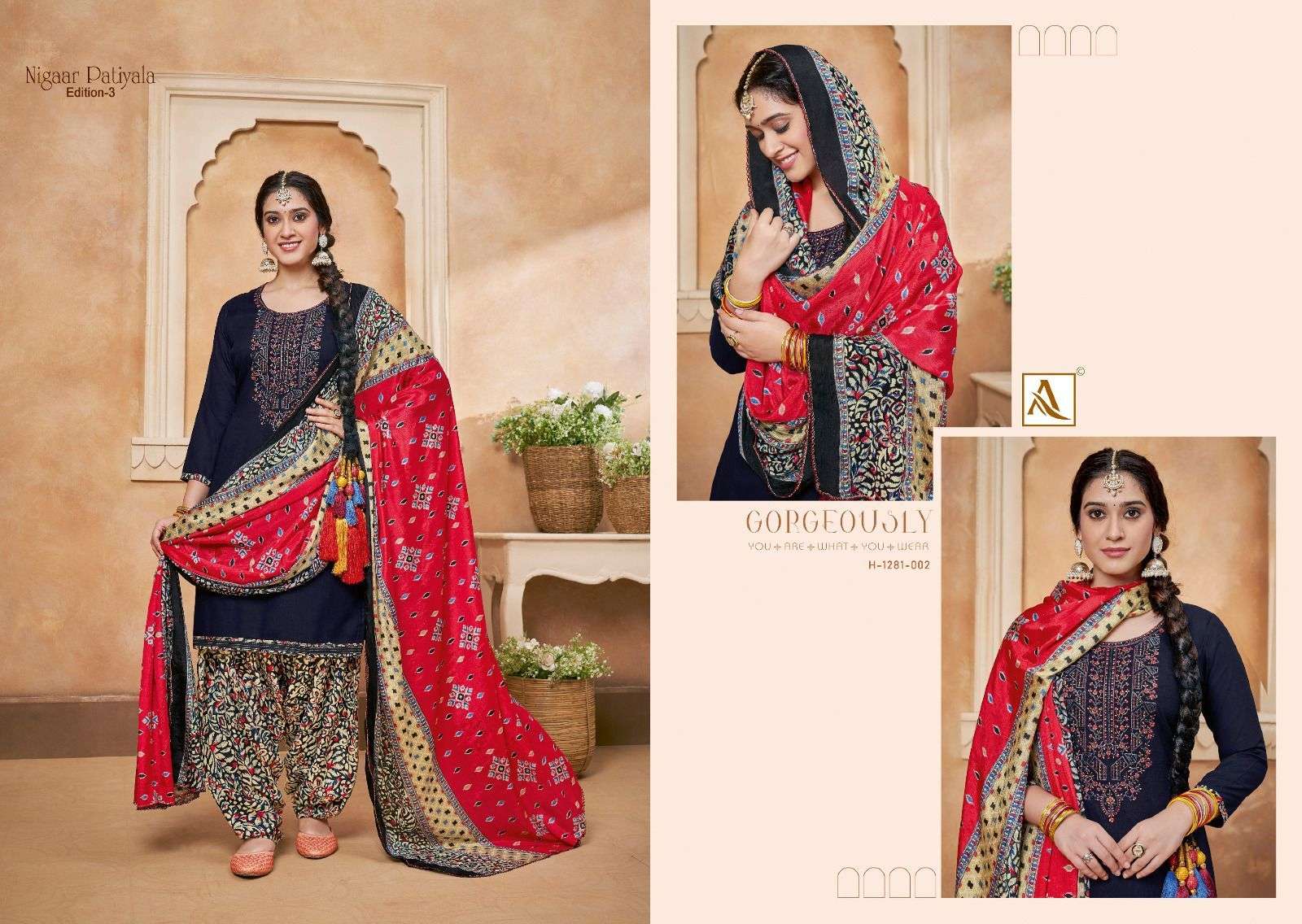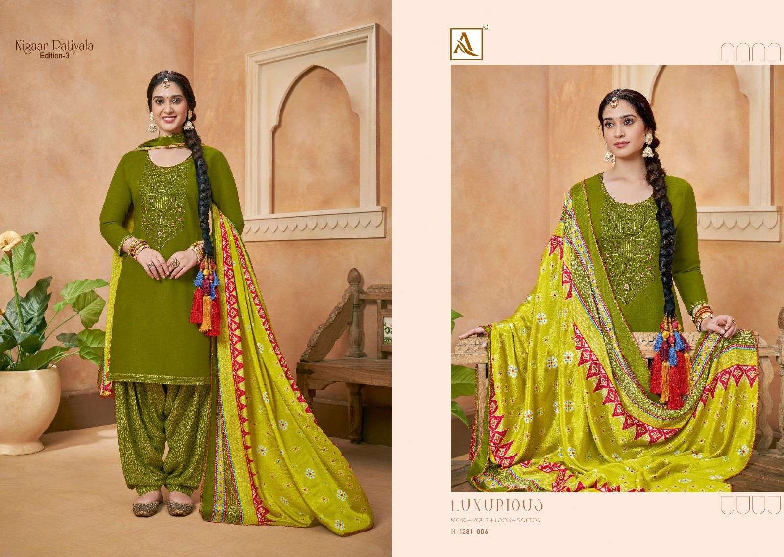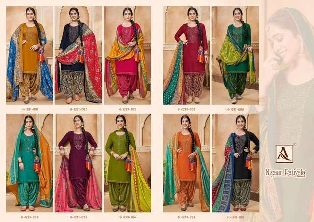 | Name: | alok suits-NIGAAR PATIYALA EDITION - 3 SERIES 1281-01 TO 1281-10 BY ALOK SUITS |