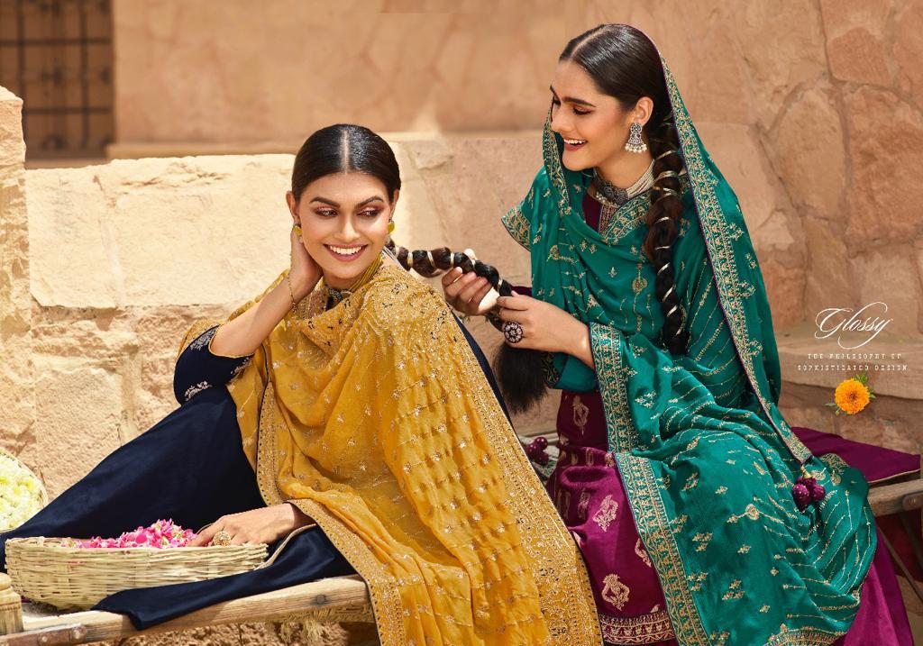 Nihaara Vol-2 By Glossy Designer With Work Bridal Wear Straight Dola Jacquard Suits Are Available At Wholesale Price