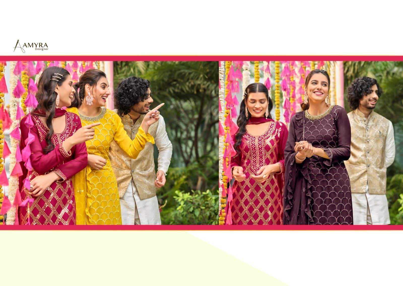 Nikhar By Amyra Designer With Work Bridal Wear Georgette Garara Suits Are Available At Wholesale Price