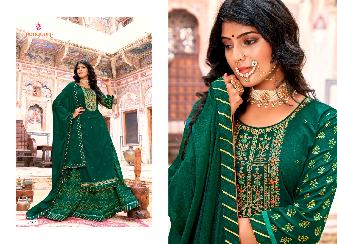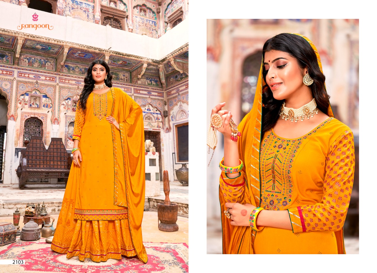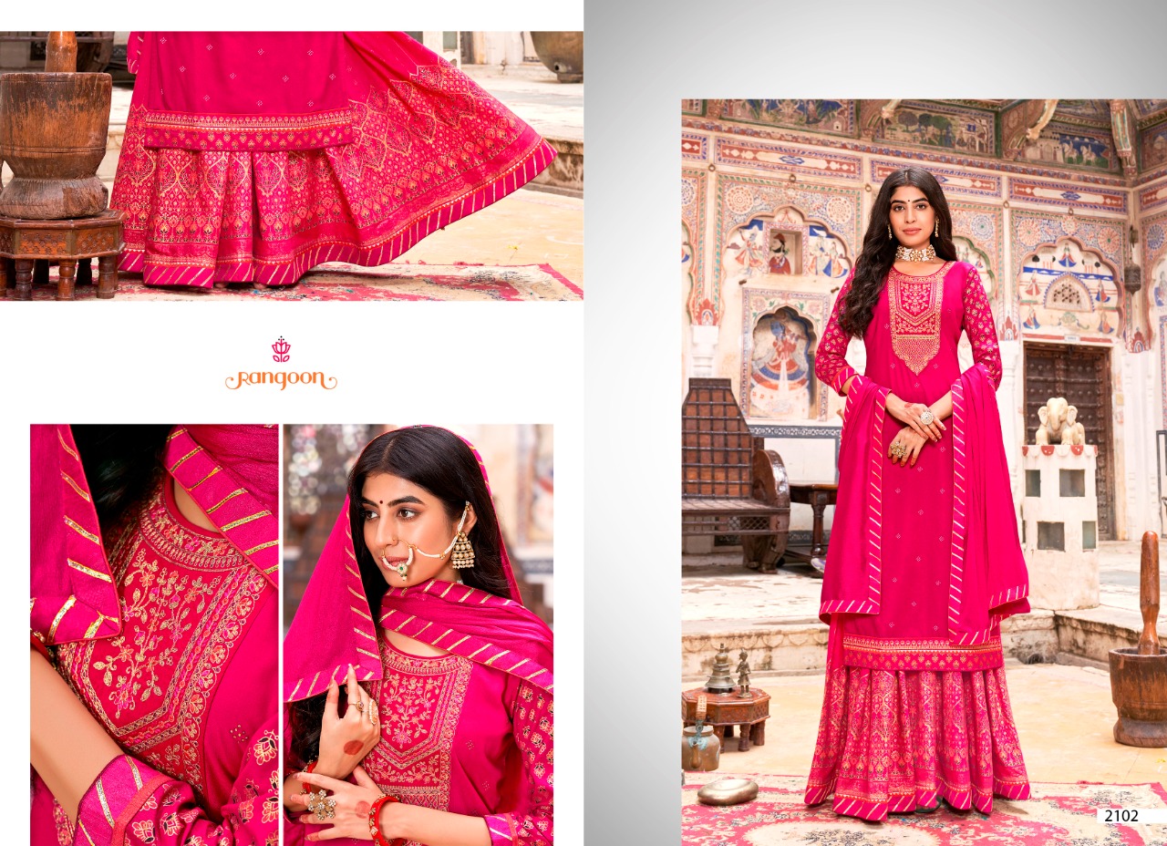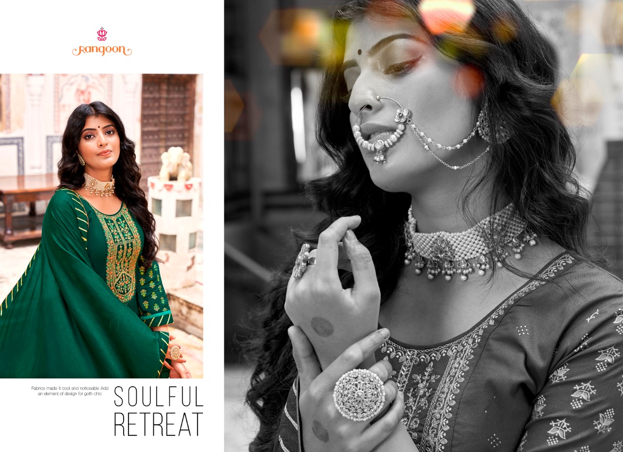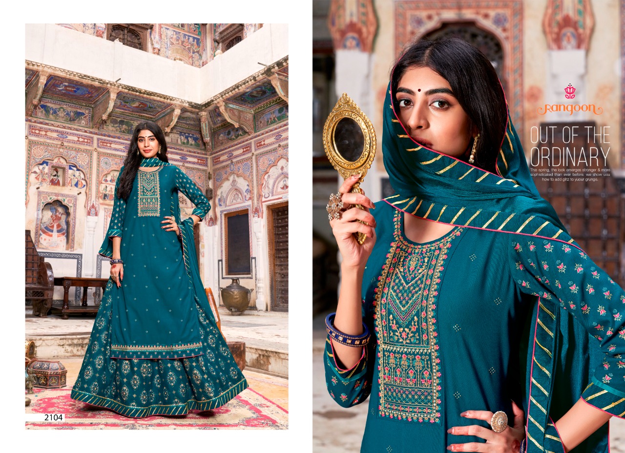 Nirja Vol-2 By Rangoon Designer With Work Rayon Kurta With Bottom And Dupatta Are Available At Wholesale Price