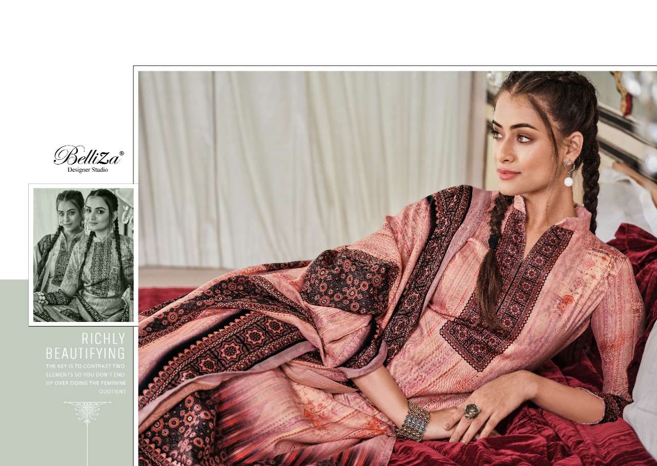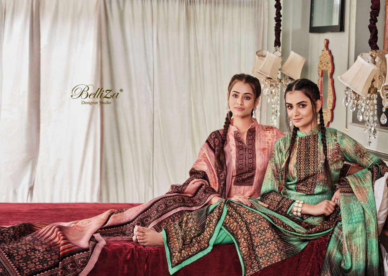 NISARG BY BELLIZA DESIGNER WITH DIGITAL PRINTED WOOL PASHMINA SUITS ARE AVAILABLE AT WHOLESALE PRICE