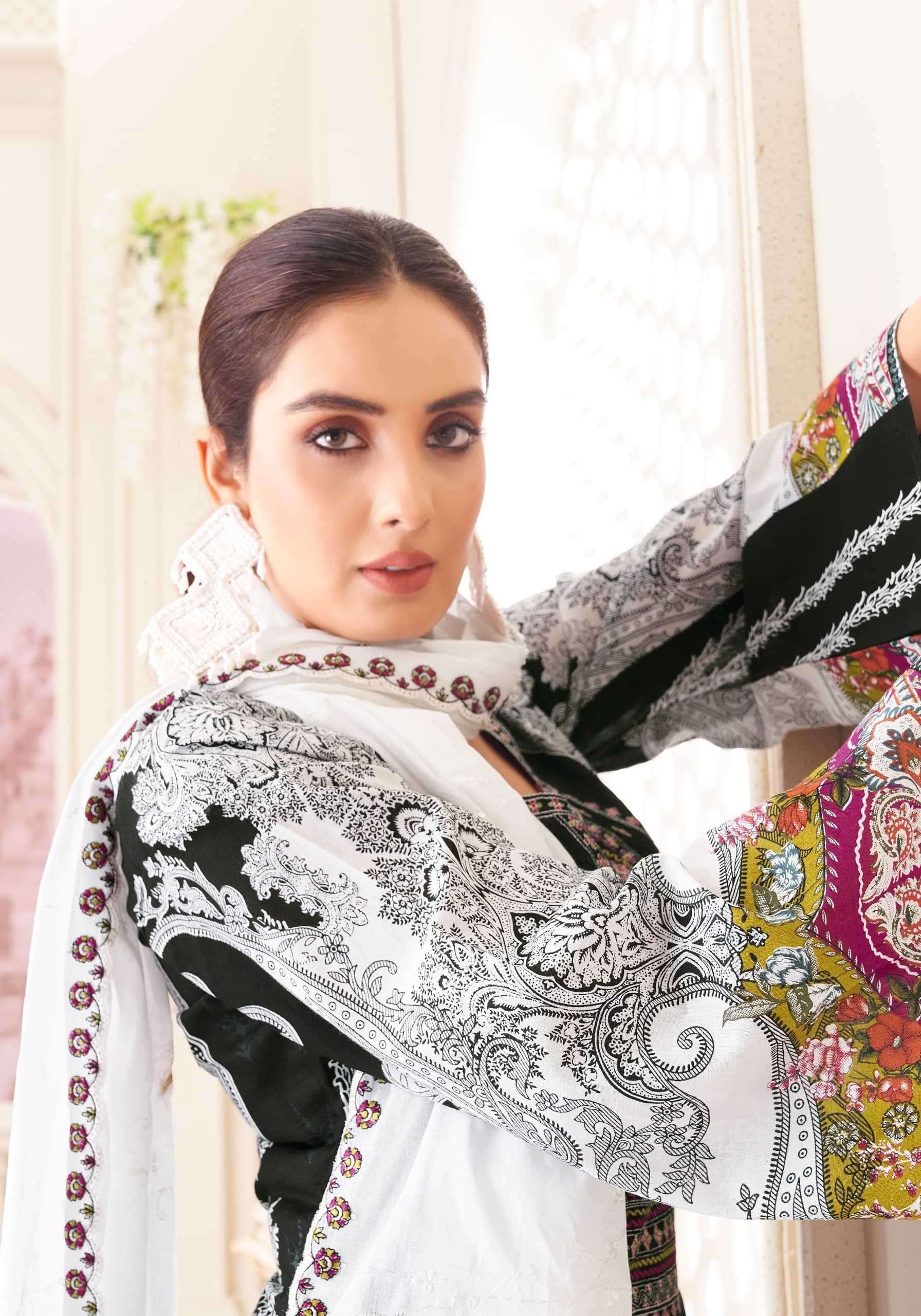 TOP - Pure Cambric Cotton Pakistani Print With Fancy Embroidery Work