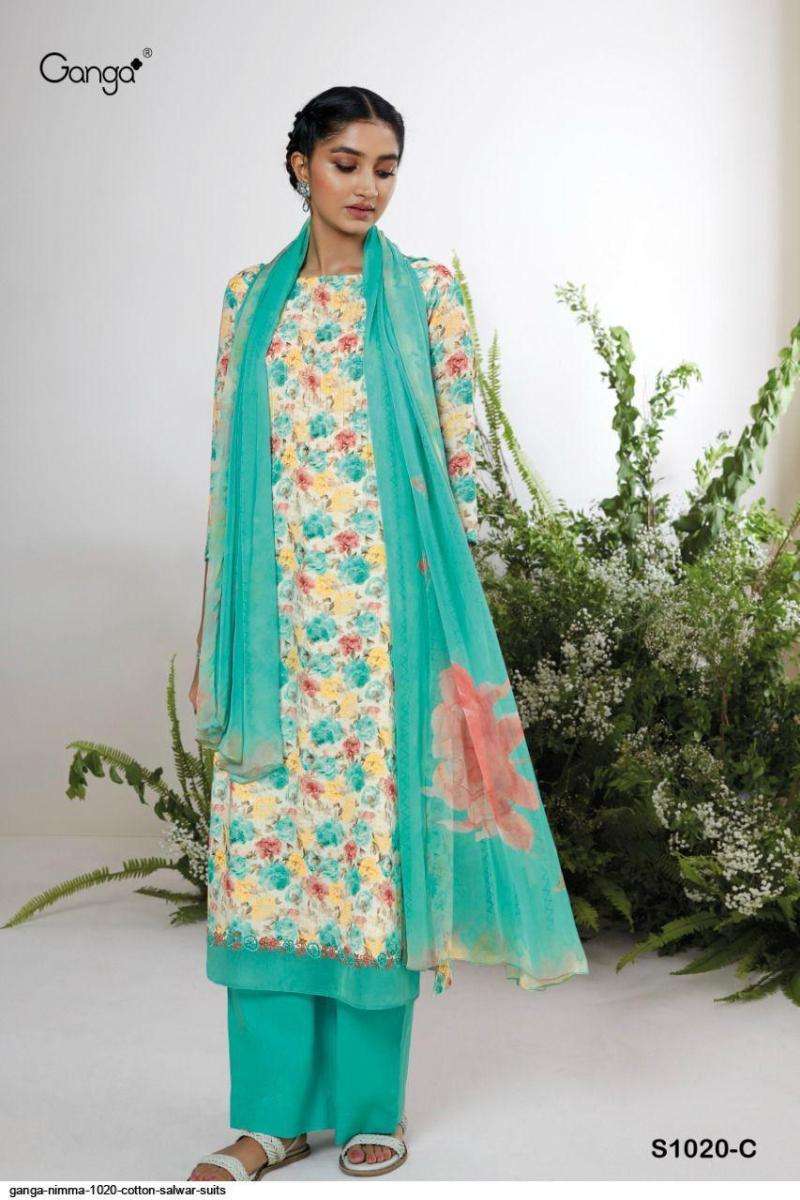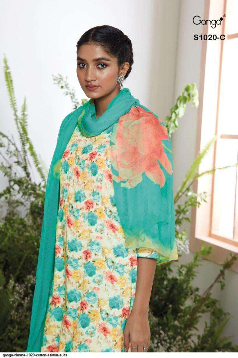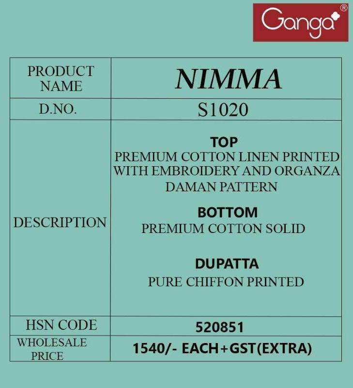 NMMA S1020 BY GANGA DESIGNER WITH PRINTED AND WORK COTTON LINEN SUITS ARE AVAILABLE AT WHOLESALE PRICE