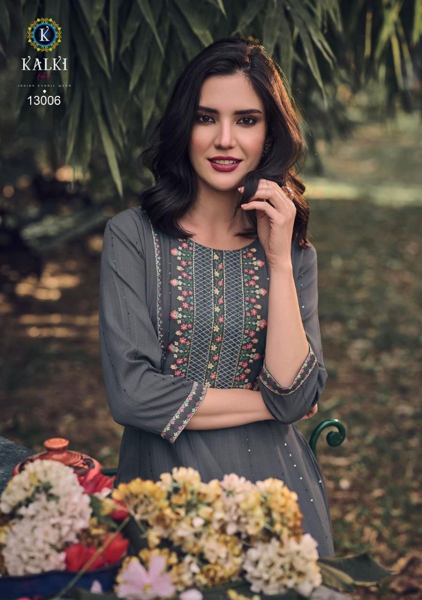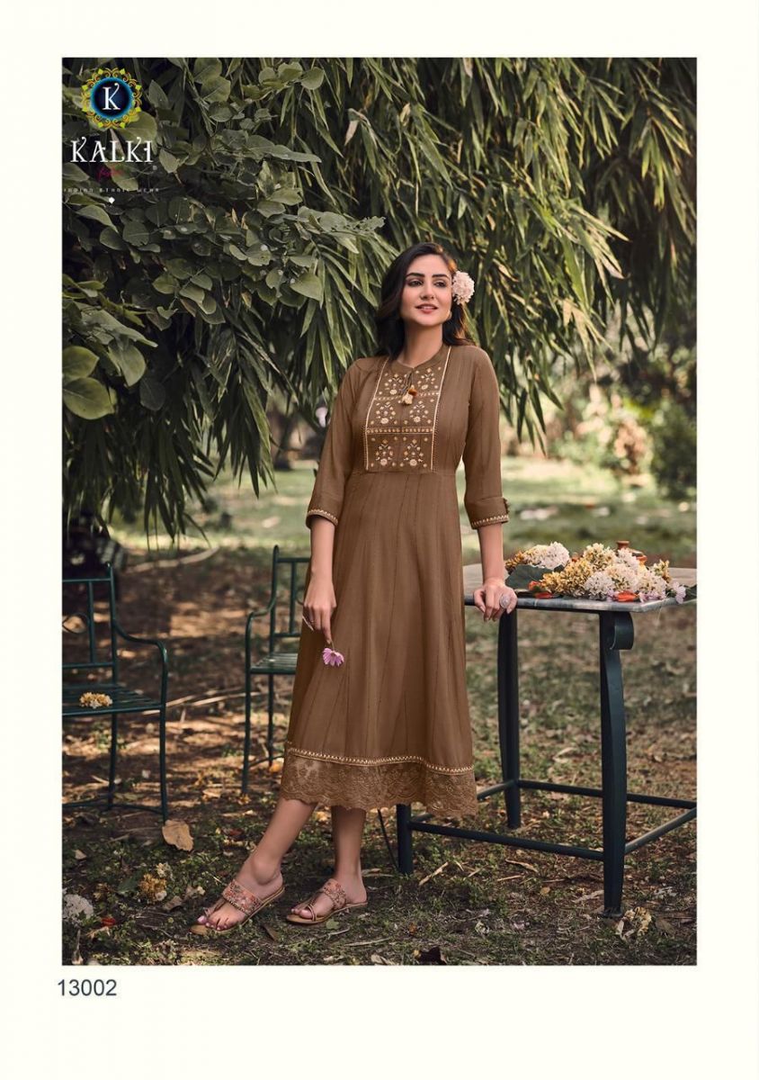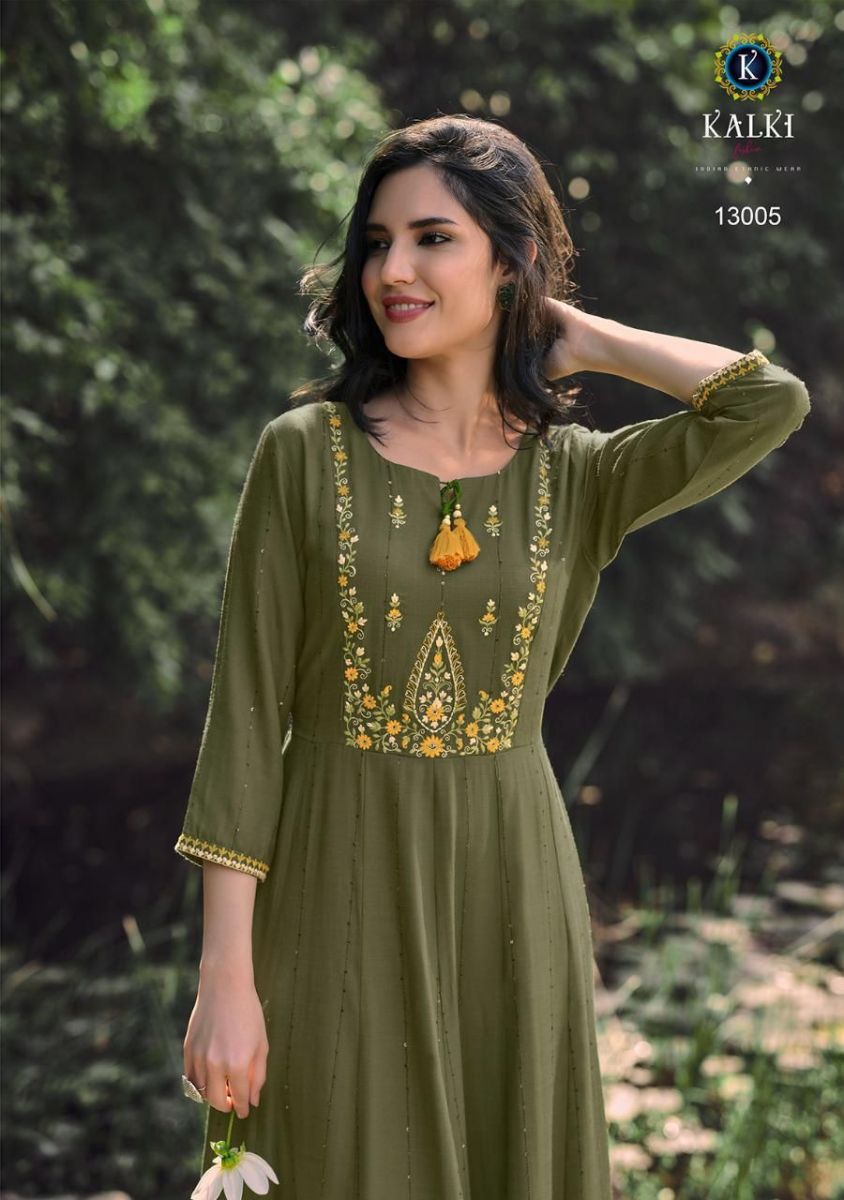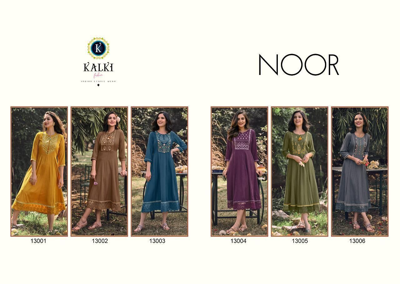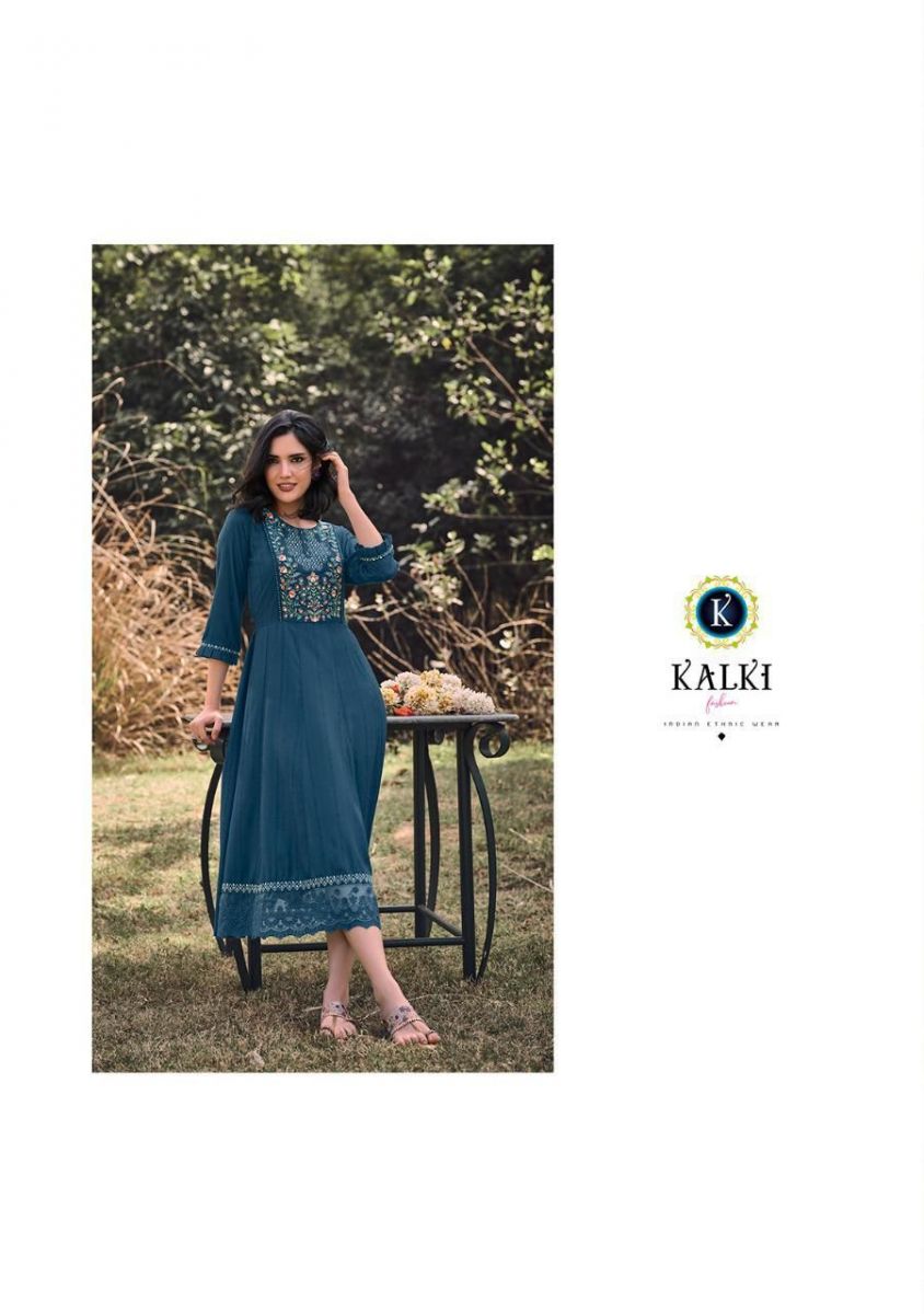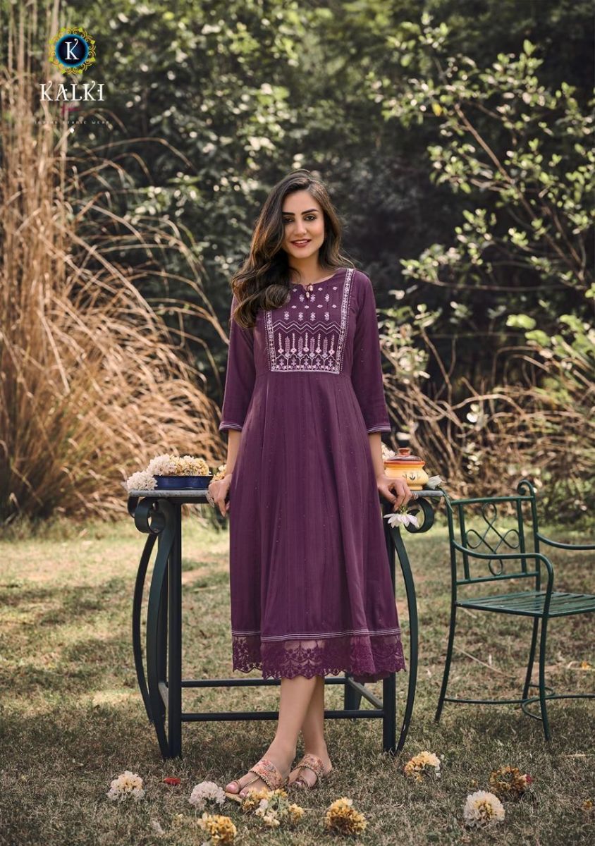 Noor Kurti By Kalki Fashion Designer With Embroidery Work Cotton Gown Style Kurtis Are Available At Wholesale Price