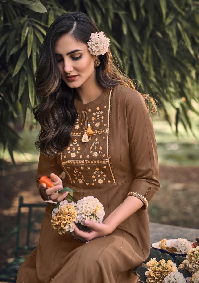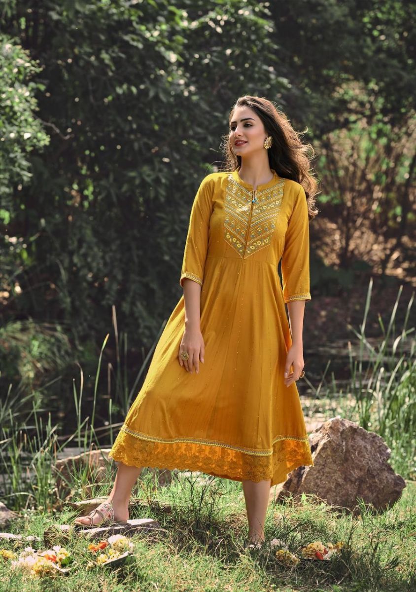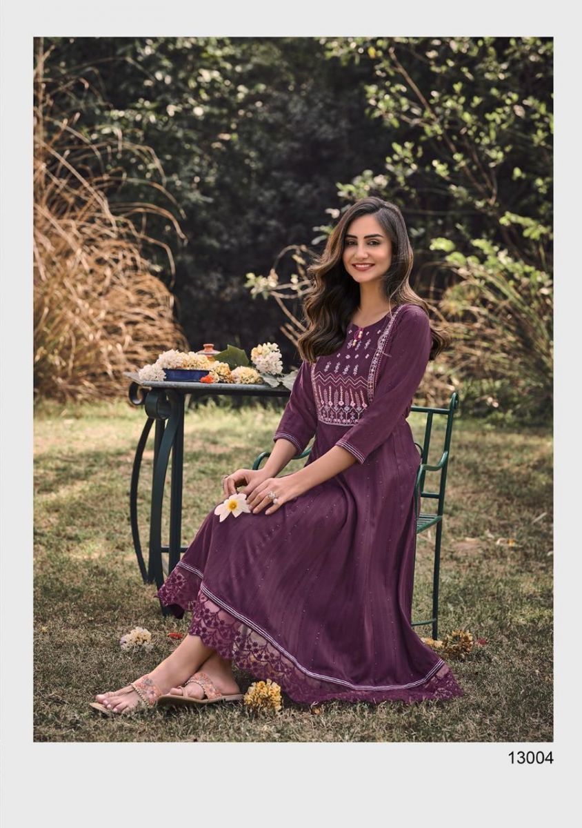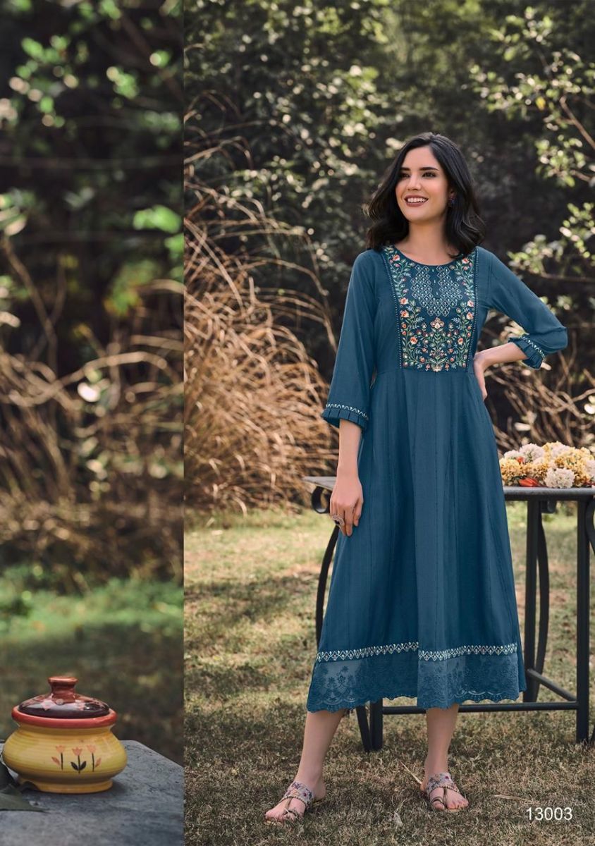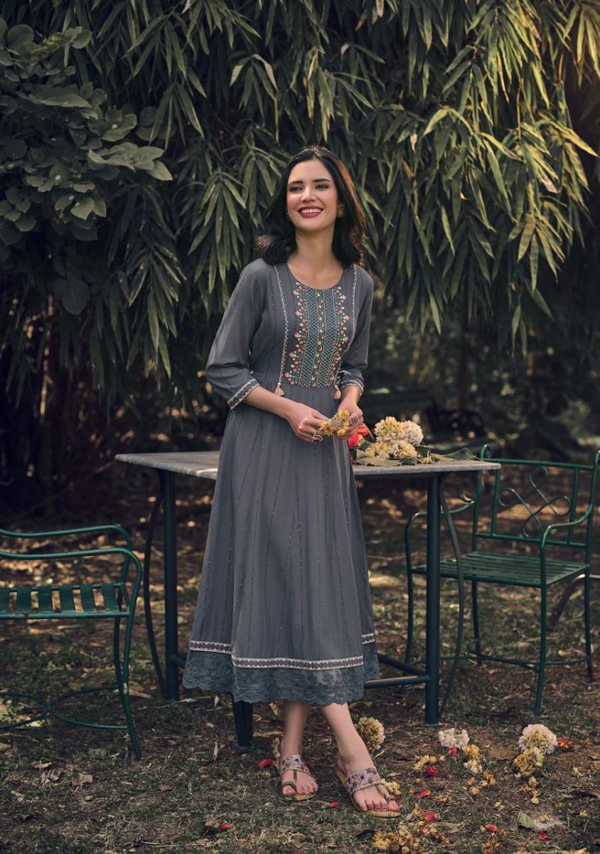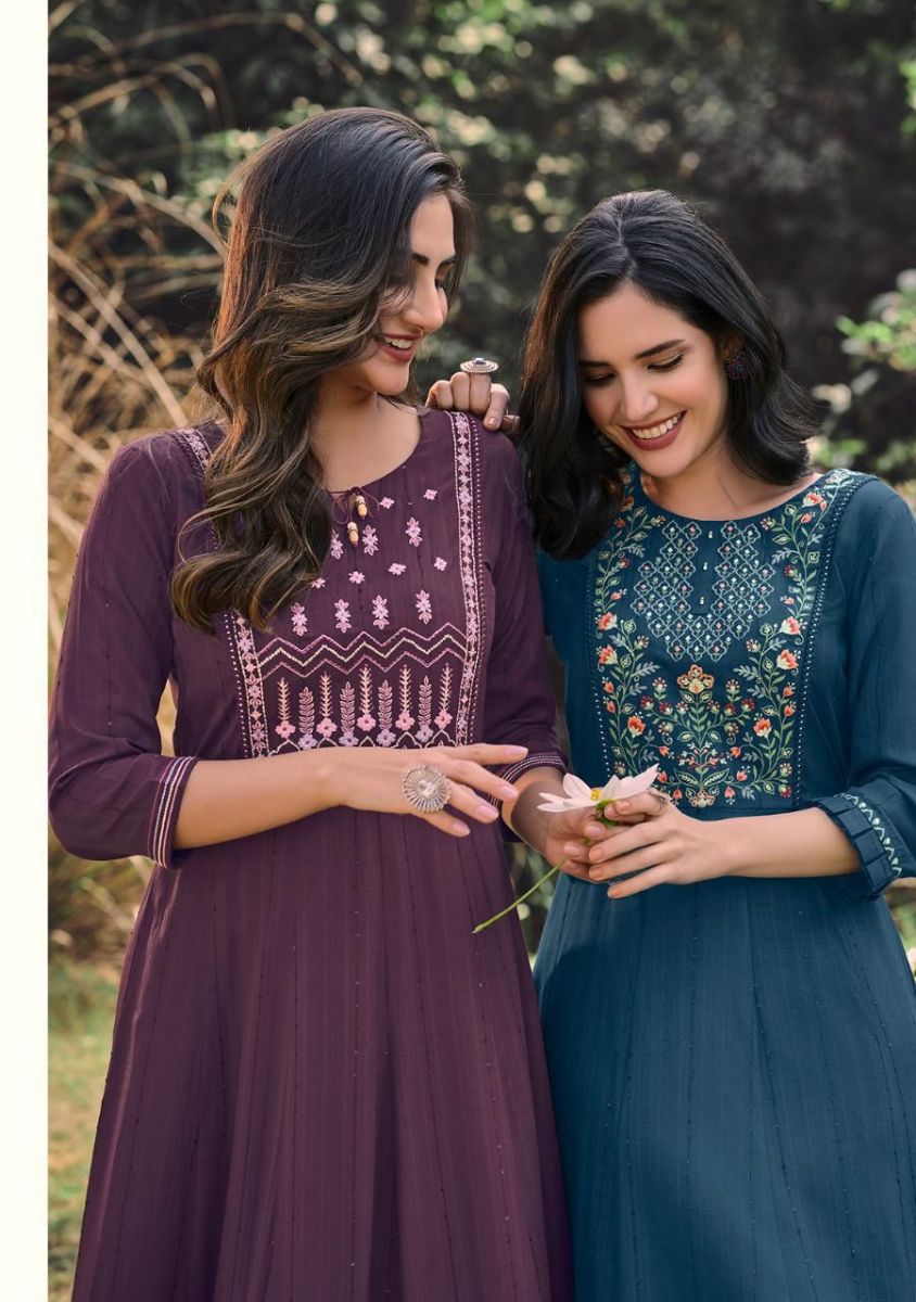 Noor Kurti By Kalki Fashion Designer With Embroidery Work Cotton Gown Style Kurtis Are Available At Wholesale Price