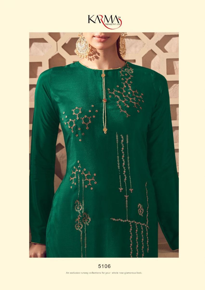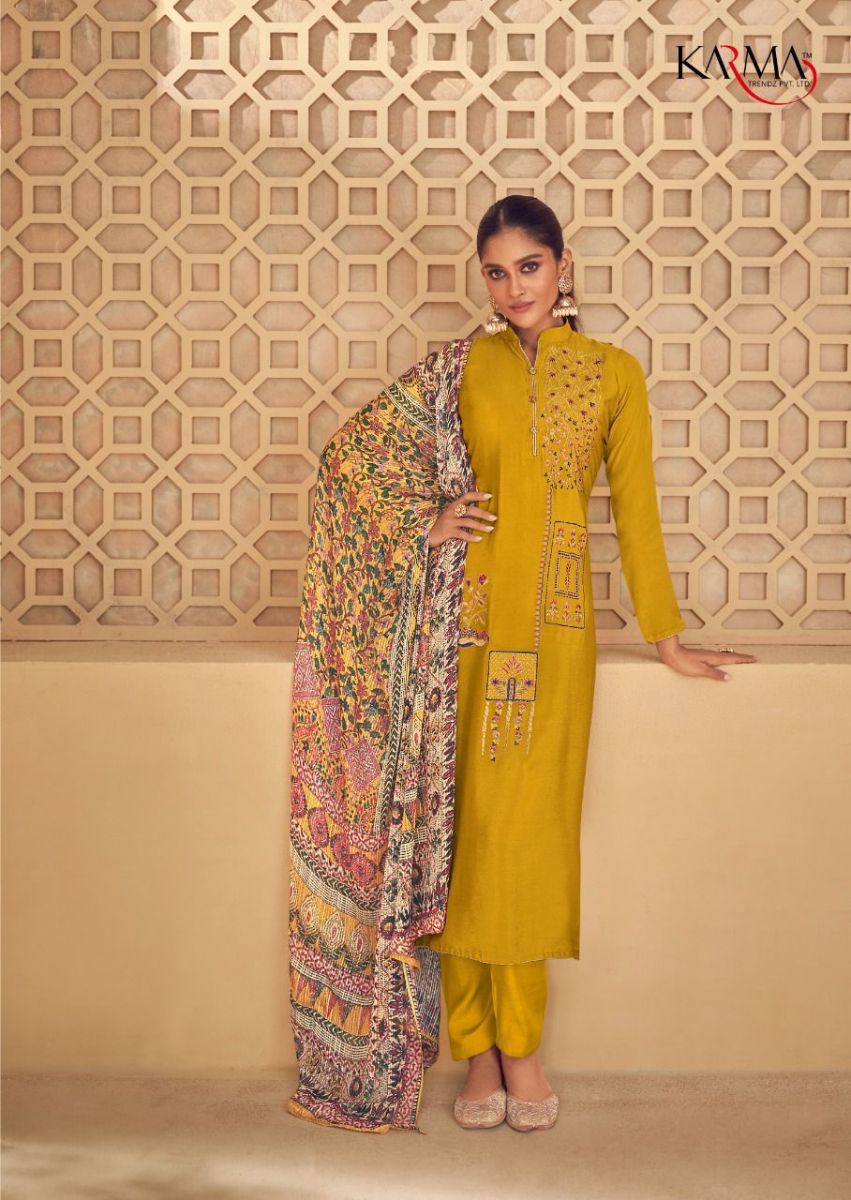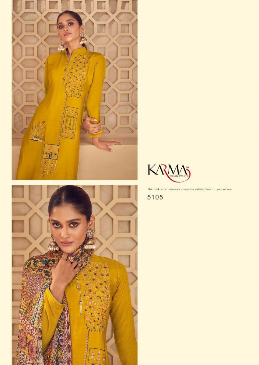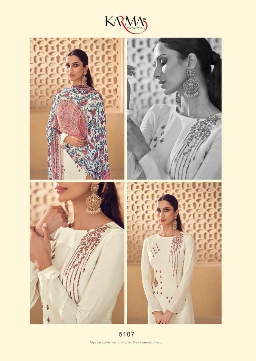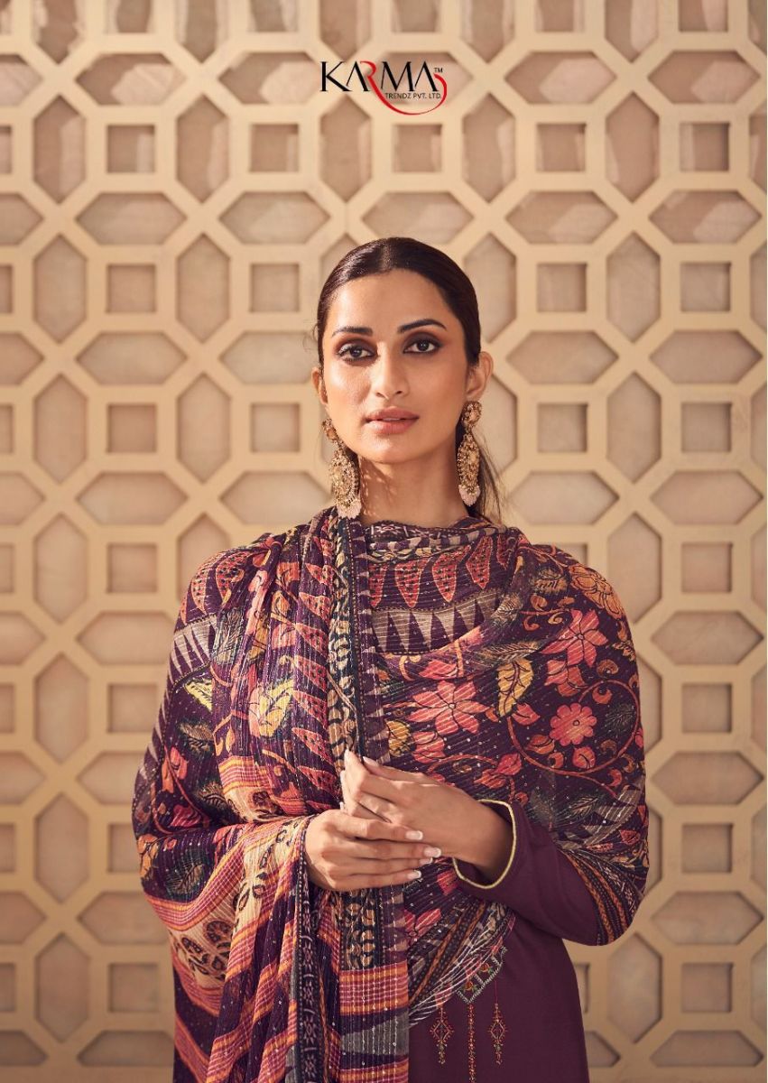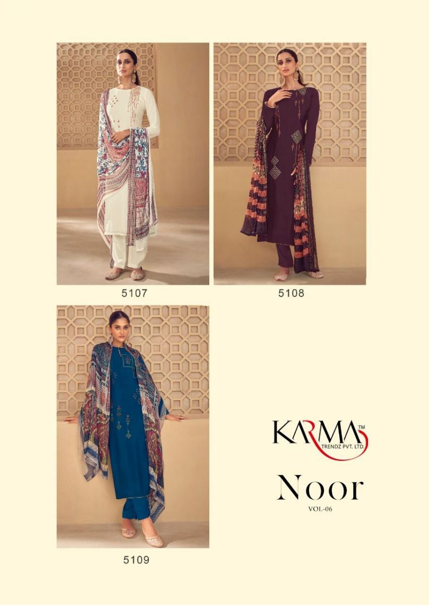 Noor Vol-6 By Karma Designer With Embroidery Work Natural Crepe Suits Are Available In Singles At Wholesale Price