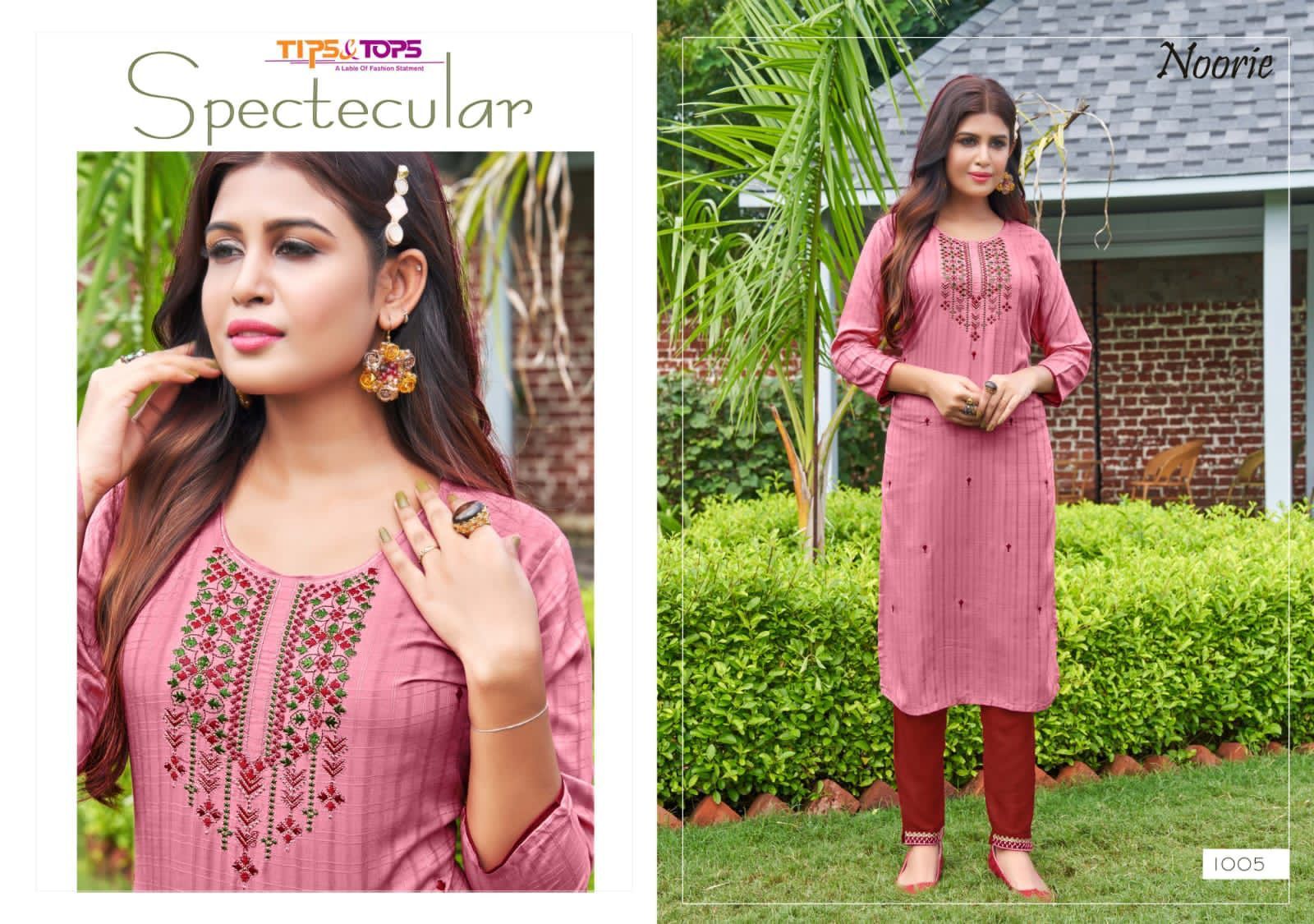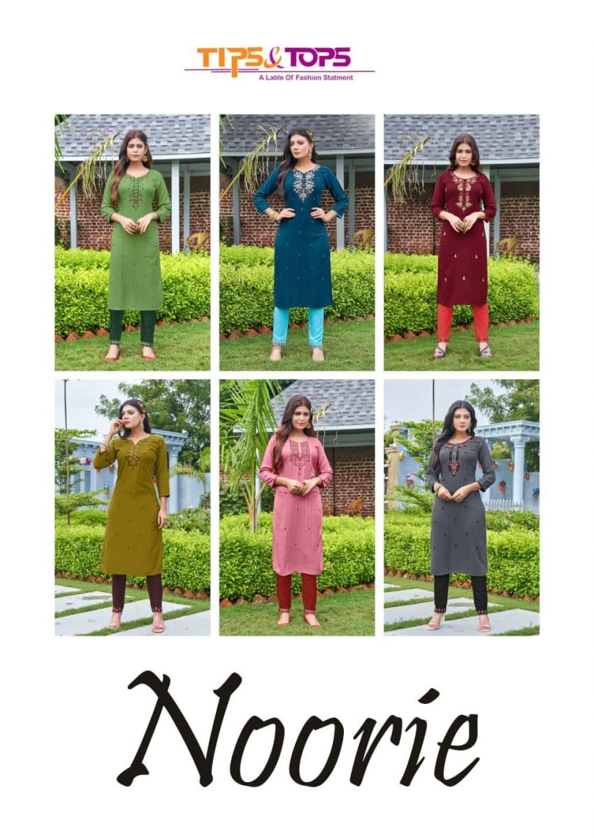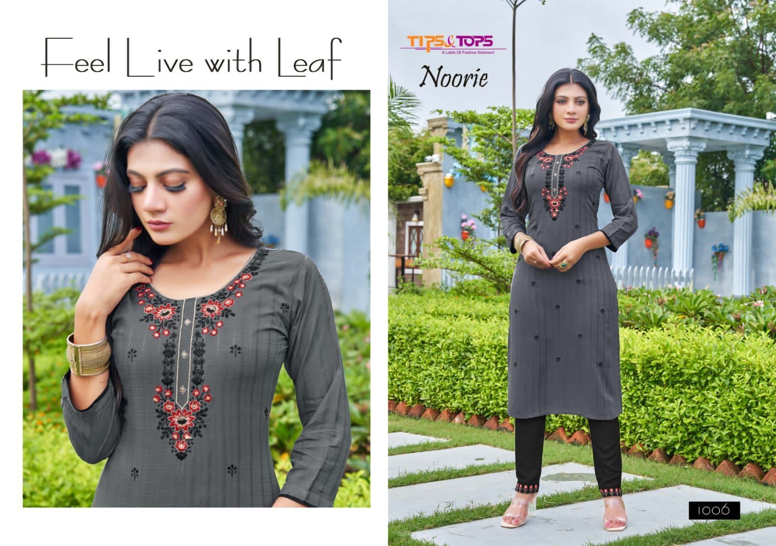 Noorie Kurti By Tips & Tops Designer With Work Rayon Kurti With Pant Are Available At Wholesale Price