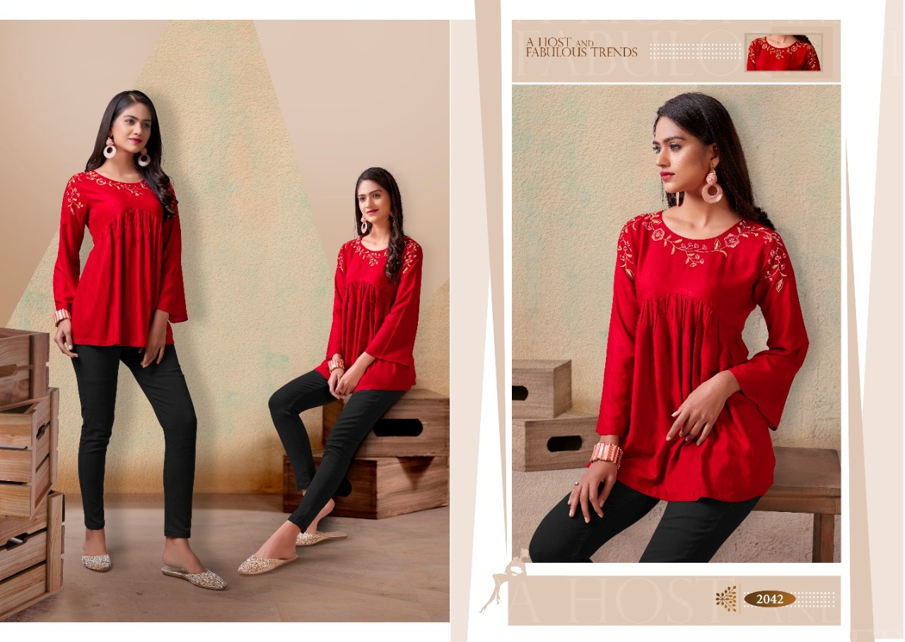 Nora Vol-1 Top By Vardan Designer With Embroidery Work Rayon Short Tops Are Available At Wholesale Price