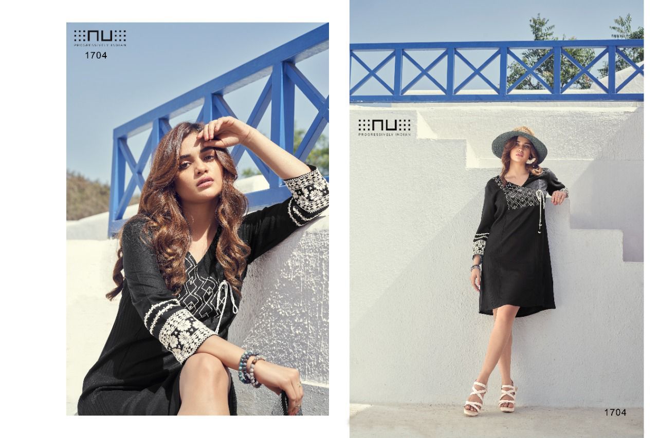 Nu Vol-17 Designer With Embroidery Work Liva Rayon Fancy Short Tunics Are Available At Wholesale Price