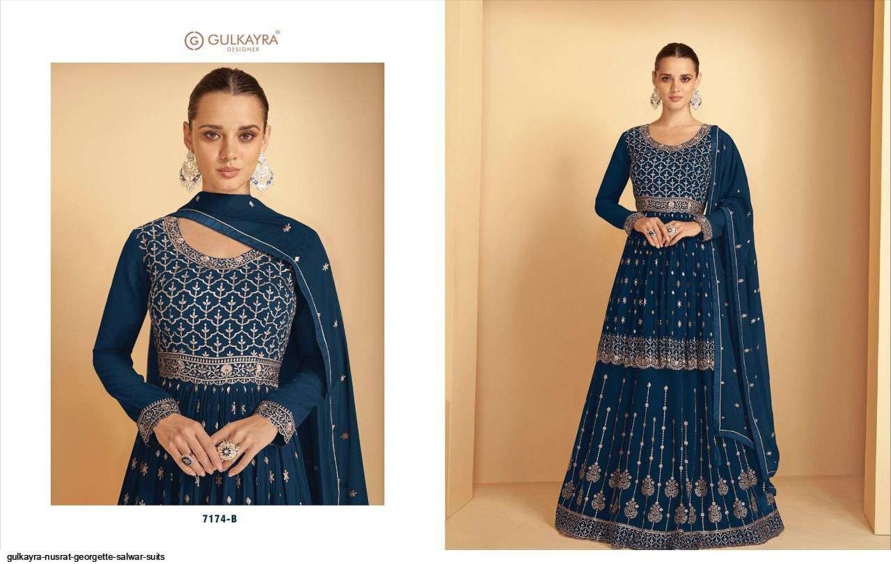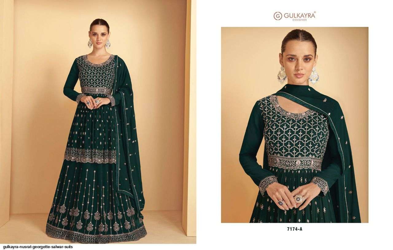 NUSRAT BY GULKAYRA DESIGNER WITH HEAVY WORK GEORGETTE SUITS ARE AVAILABLE IN SINGLES AT WHOLESALE PRICE
