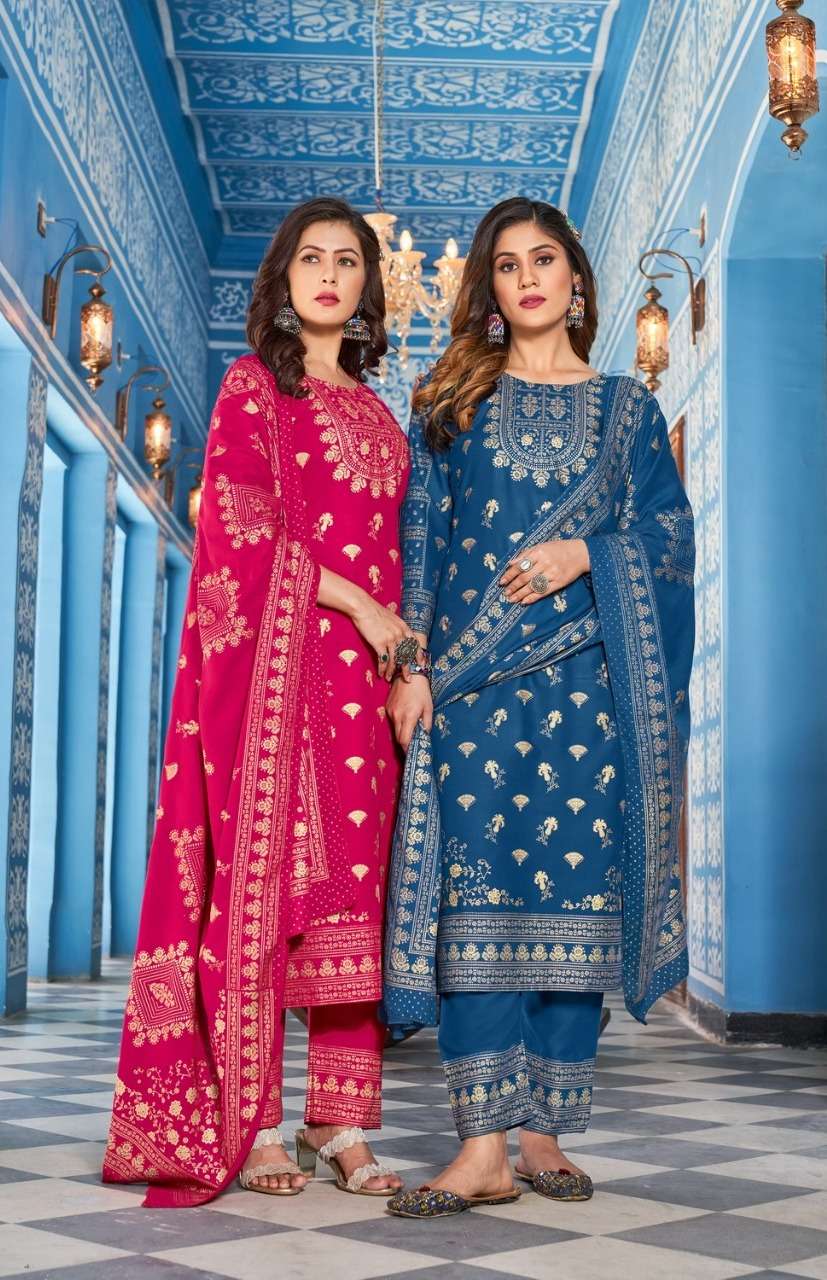 NYKAA VOL-8 KURTI BY BANWERY DESIGNER WITH PRINTED RAYON KURTI WITH PANT AND DUPATTA ARE AVAILABLE AT WHOLESALE PRICE