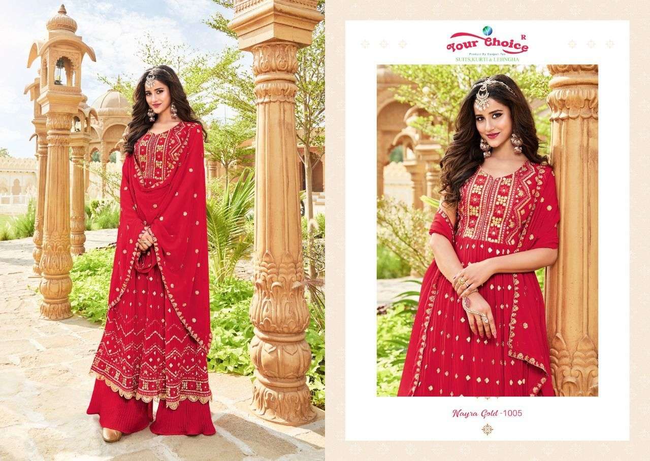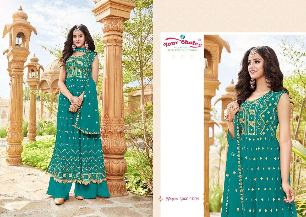 NYRA GOLD BY YOUR CHOICE DESIGNER WITH WORK GEORGETTE SHARARA SUITS ARE AVAILABLE AT WHOLESALE PRICE