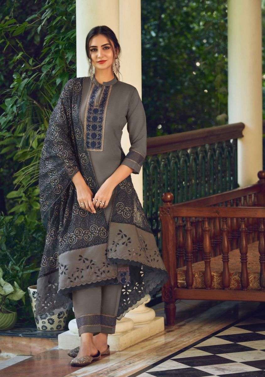 NYRA KURTI BY KALKI FASHION DESIGNER WITH WORK VISCOSE SILK KURTI WITH PANT AND DUPATTA ARE AVAILABLE AT WHOLESALE PRICE